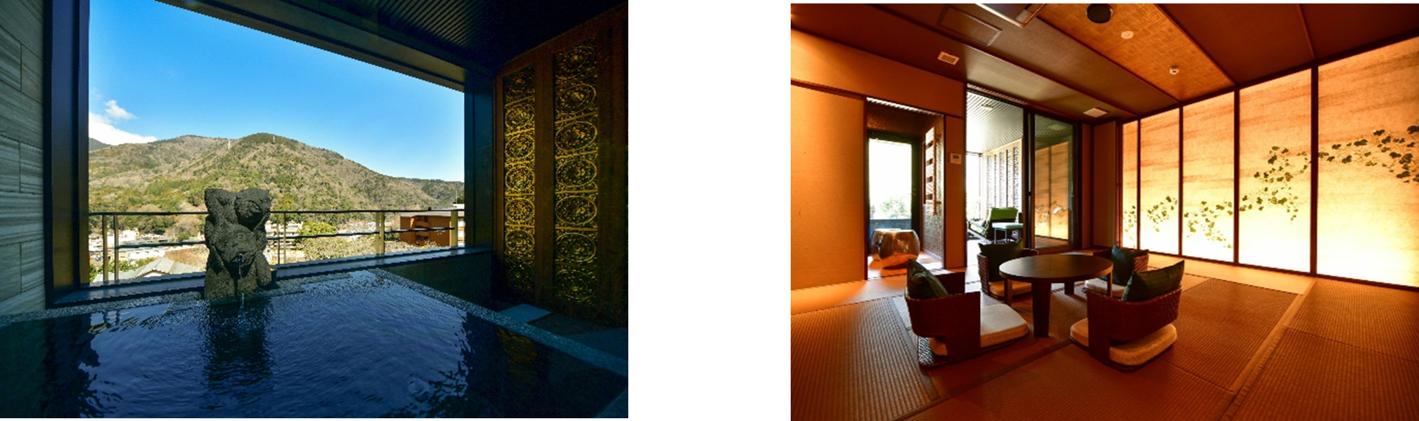 首都圏から近く、多くの旅行者に人気な神奈川県の箱根に位置する箱根藍瑠は、全15室に専用露天風呂を備えた、プライベートな空間を楽しめる隠れ家のような宿泊施設です。温泉は自家源泉掛け流しの天然温泉で、24時間入浴可能な大浴場と客室にある露天風呂からは箱根の山々を望むことができます。芦ノ湖などの自然だけでなく、美術館など様々な世代の旅行者が楽しめるスポットのある箱根で、ゆったりとした時間を過ごしてみてはいかがでしょうか。