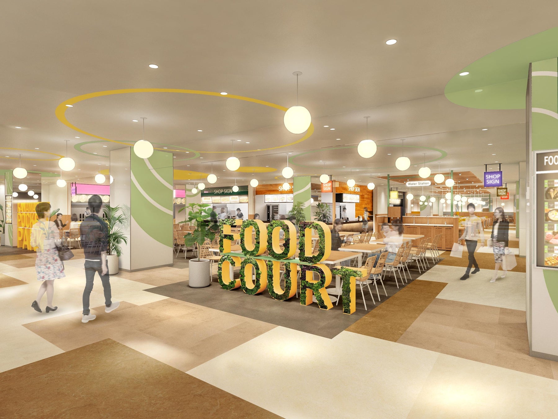 和・洋・中・スイーツなどの料理が一堂に会し、幅広い世代が楽しめるフードコートとなっています。座席は約450席を備え、食事やショッピング中の休憩などで、ゆっくりとご利用いただけます。