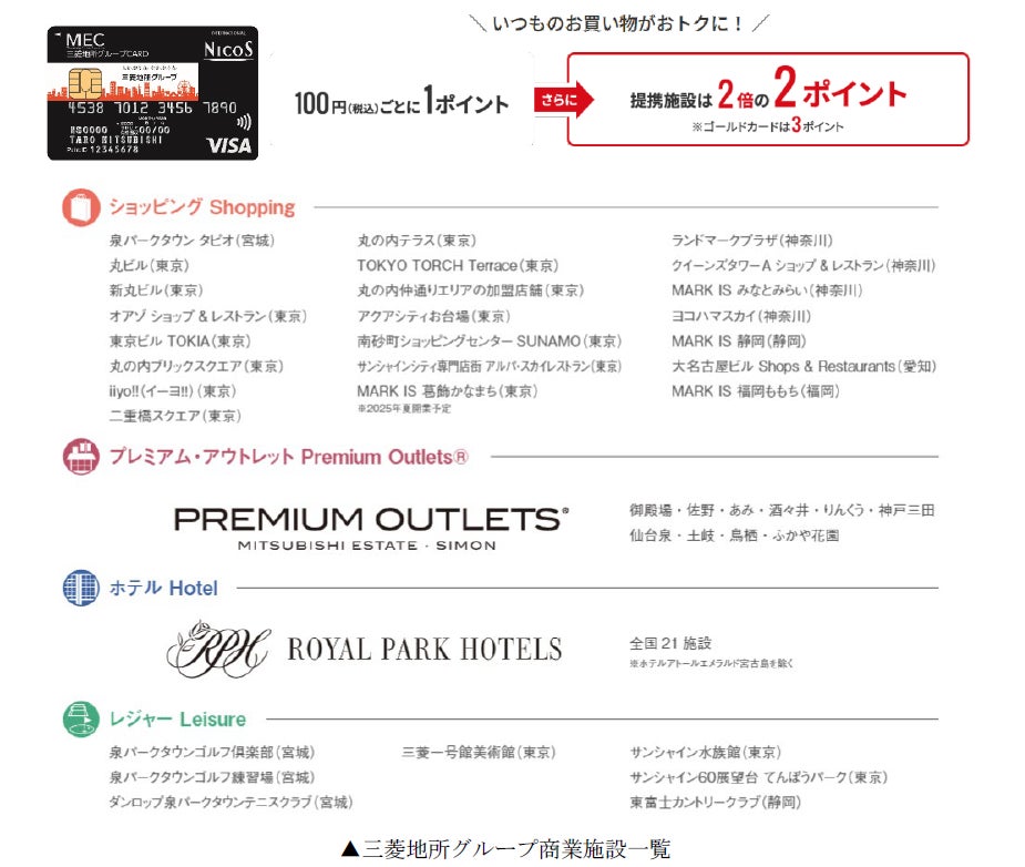 プレミアム・アウトレットや丸の内の商業施設など、全国約50の三菱地所グループ施設と提携するクレジットカードが「MARK IS 葛飾かなまち」でも提携。提携施設でのお買い物100円(税込)ごとに2ポイント分貯まるとてもお得なカードです。