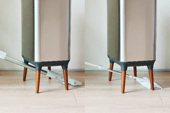 日本人の成人男女の平均身長を元に、ベストなセンサー位置を計算。さらに、メーカーで身長の違う社員何人かが実際に試すことで、デザイン性と利便性を兼ね備えた、ちょうど良い高さを割り出しました。さらに、木目調の脚で本体下に空間ができるため、お掃除がしやすくなっています。