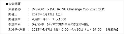 「D-SPORT & DAIHATSU Challenge Cup 2023 筑波」開催のお知らせ