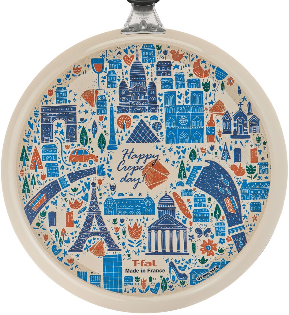 底面のデザインも一新!「Bon appétit(ボナペティ=召し上がれ)」をコンセプトに、エッフェル塔、凱旋門、オペラ座やルーブル美術館など、見ているだけでワクワク楽しい気持ちになるパリの街並みを描いたキュートなデザインが、まるでパリの街を散策するかのような楽しい気分にしてくれます。しかも、外面(そとめん)はキズや汚れに強いエナメル加工が施されているため、耐久性とともにお手入れがラクなのも嬉しいポイントです。このフレンチパンで、家族や友人たちとのクレープパーティーが楽しくなること間違いなし!2024年はフランス流に春の訪れをお祝いしてみませんか。