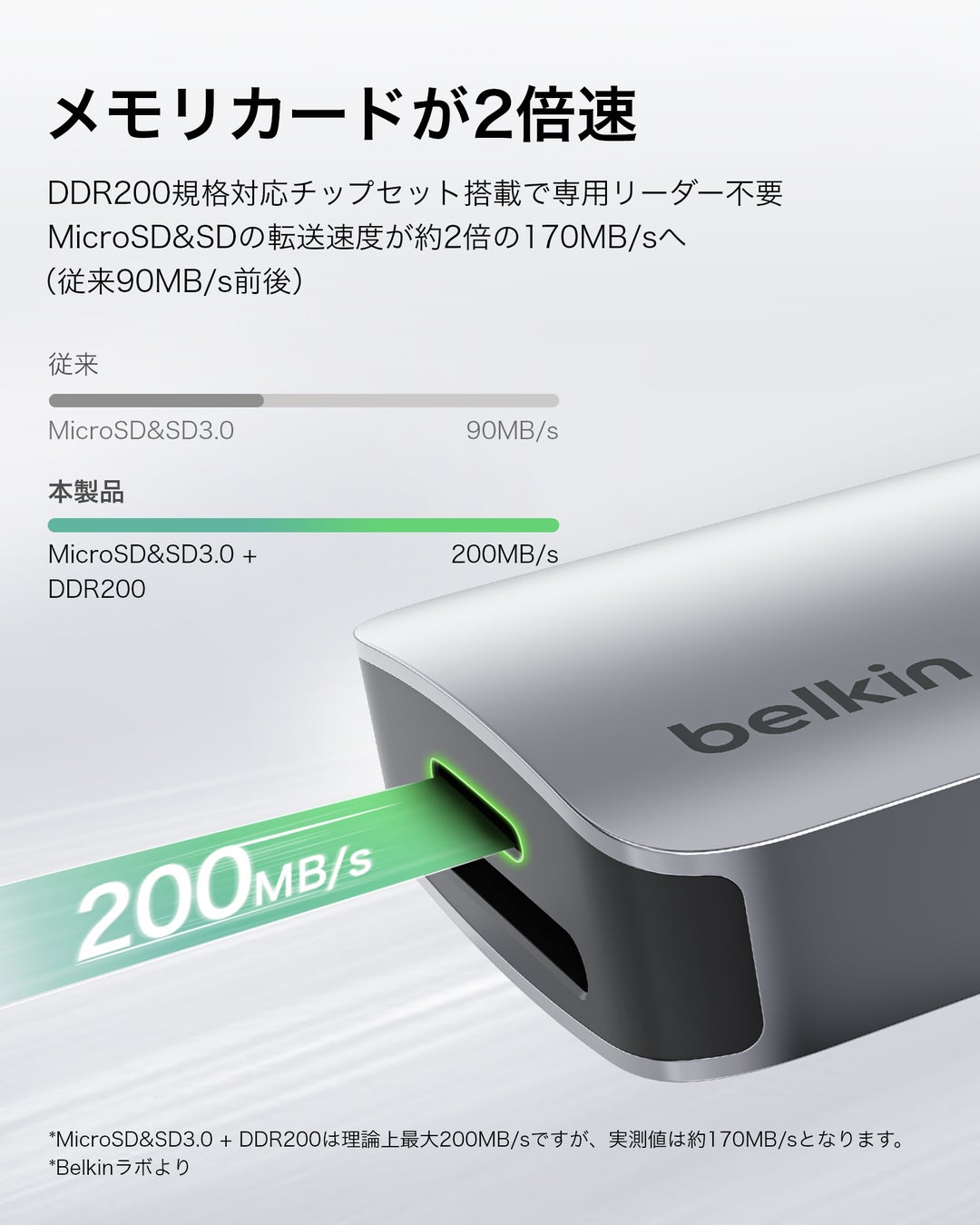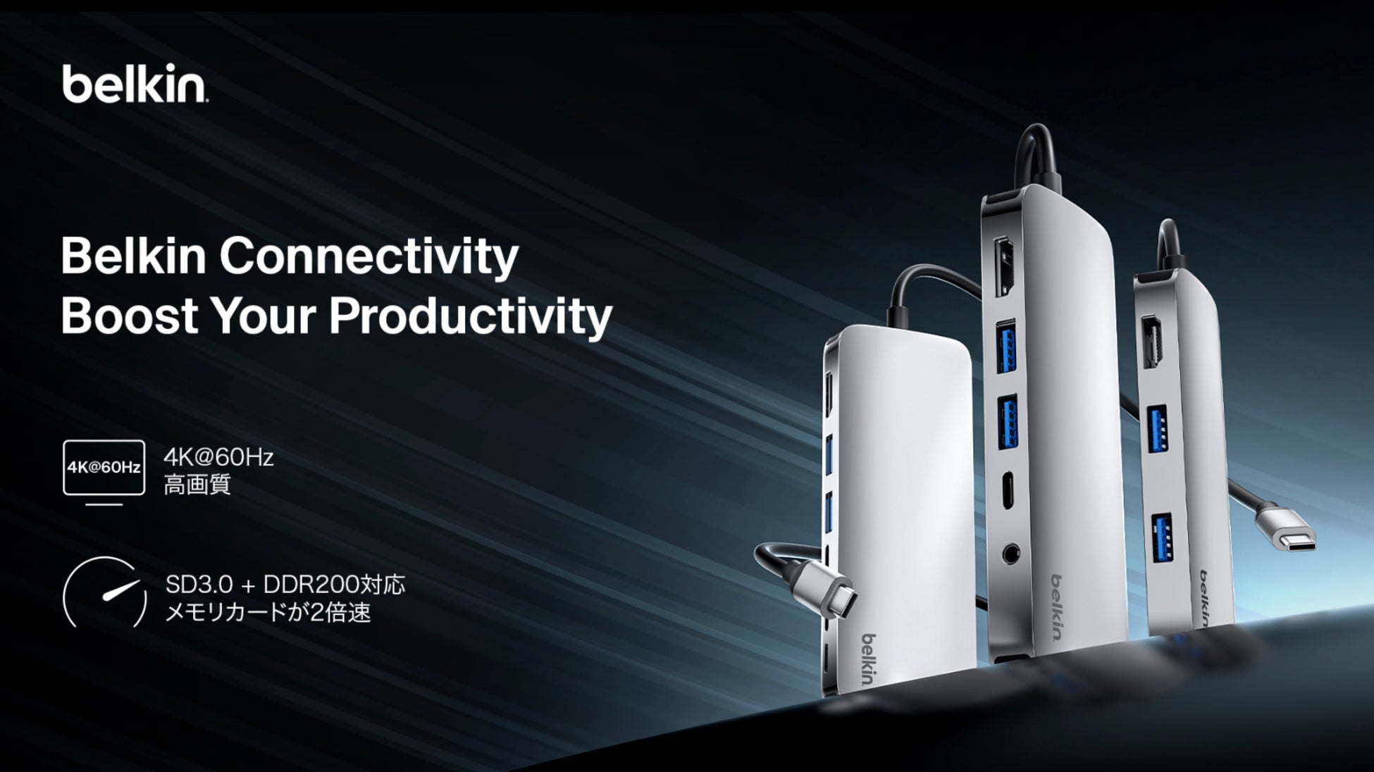 【Belkin】DDR200対応でSDカードの転送速度が2倍 1000時間フル負荷テスト通過で高耐久 Belkin USB-C マルチポートハブ3種類が4月9日販売開始