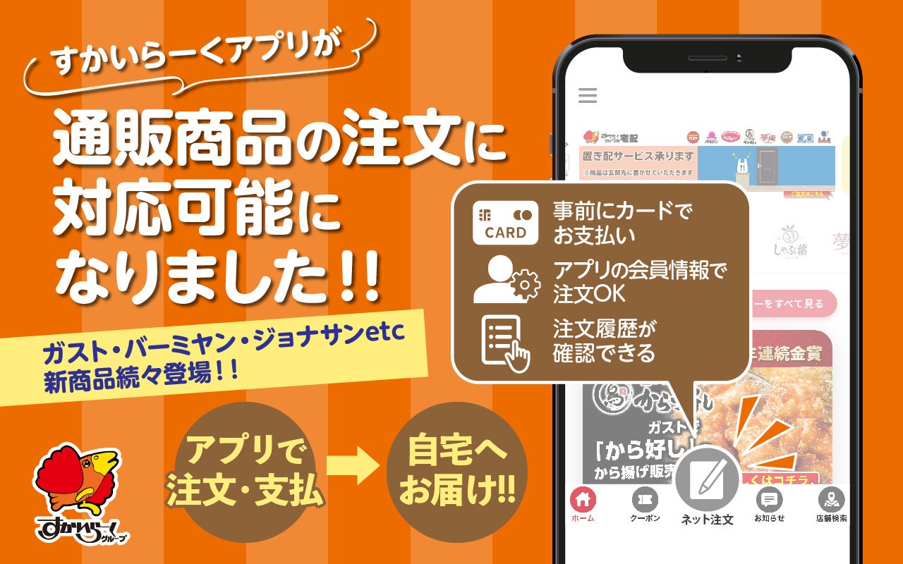 「すかいらーくアプリ」内より直接通販商品をお買い求めいただけます。すでにアプリをお持ちの方は新規会員登録不要!事前にご登録のクレジットカードでお支払いいただけるため、お気軽&クイックにご注文いただけます。