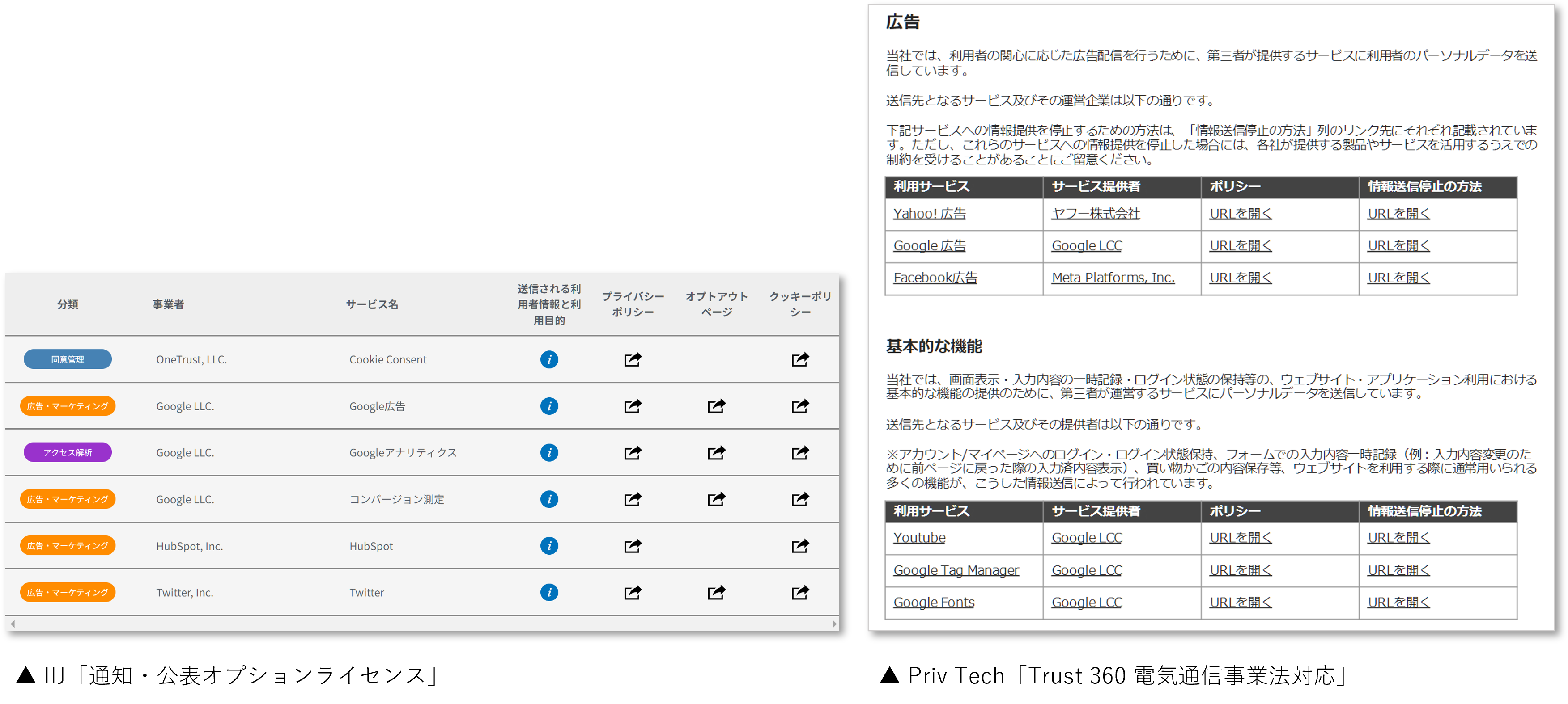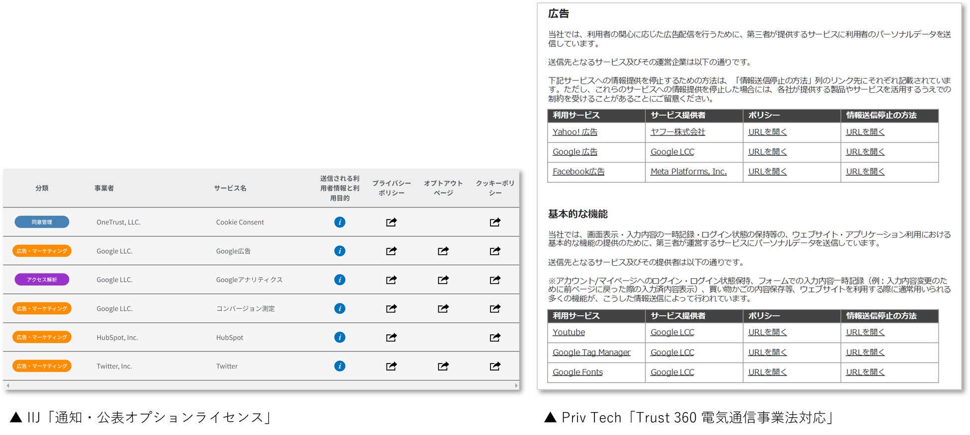 ピギーバックにも対応し得る形で、企業サイト上の通信状況の洗い出しから一覧掲出を行う「Trust 360 電気通信事業法対応」