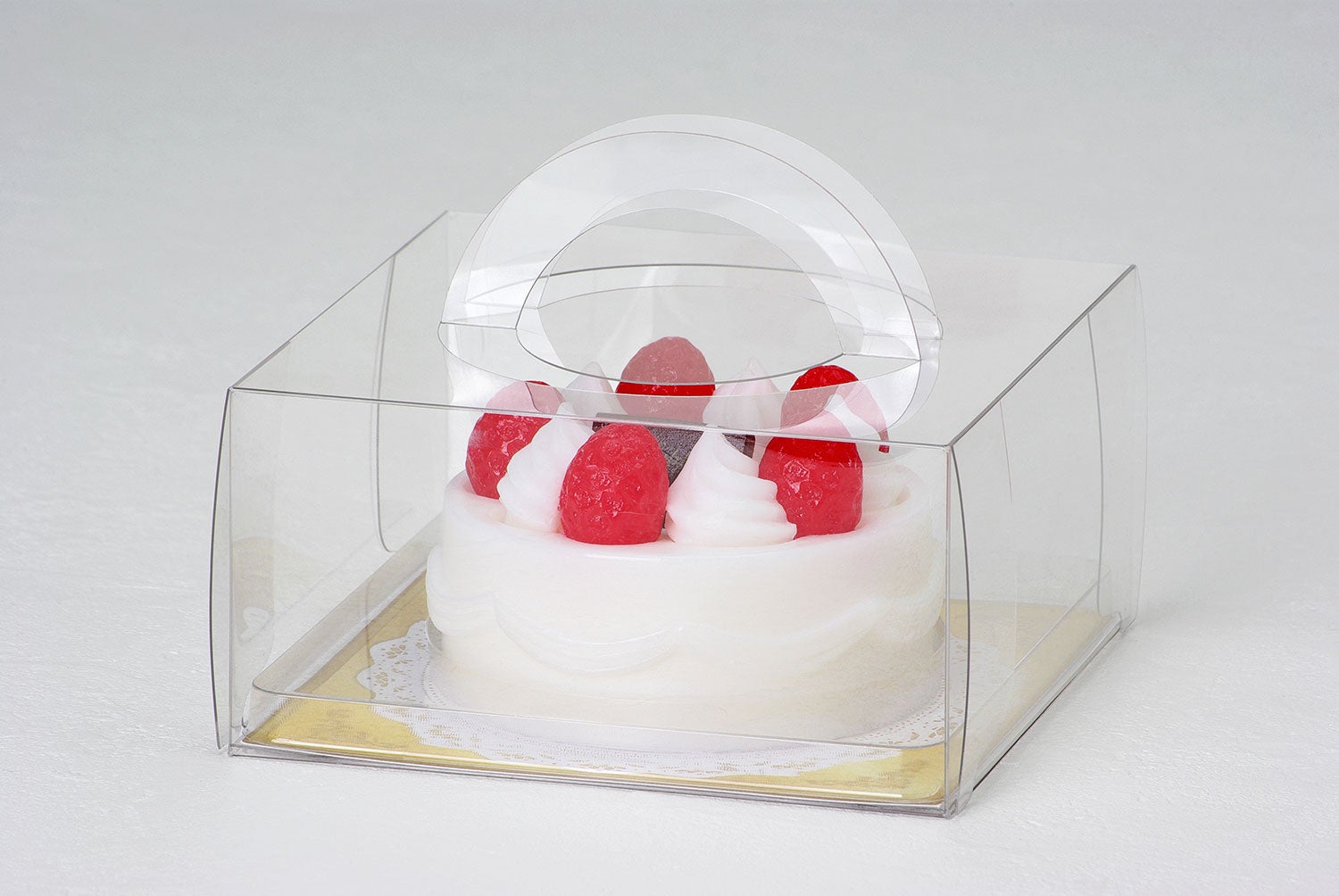 ケーキ箱の手提げもリアルに再現し、懐かしい昭和の誕生日ケーキの思い出がよみがえってきます。