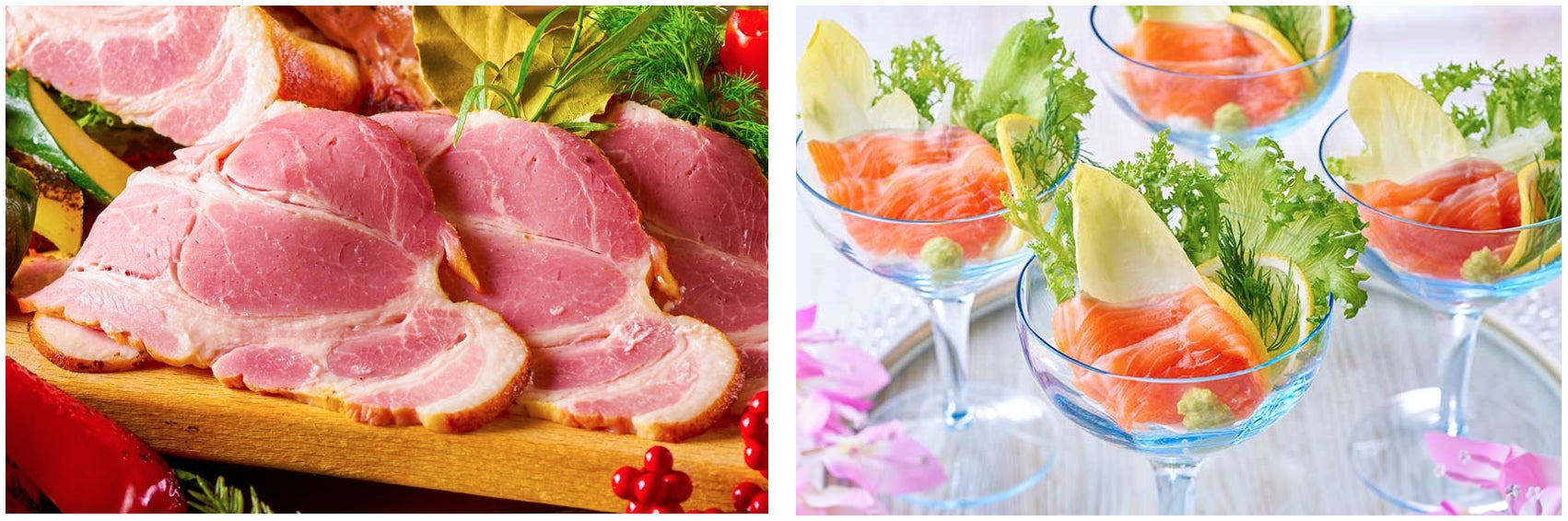 右:信州のブランドフィッシュ「信州サーモンのカルパッチョ」は前菜にお楽しみください。