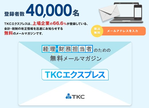 <上場企業の約67%に配信中>メールマガジン「TKCエクスプレス」の登録者数が40,000名を突破しました