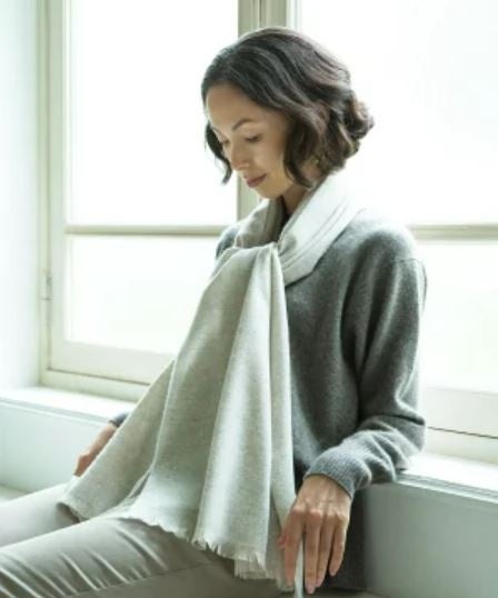 原料となるカシミヤ山羊の飼育から自社工場での生産、管理に至るまですべてを自社一貫で行うからこそできる品質を誇るカシミヤストールです。