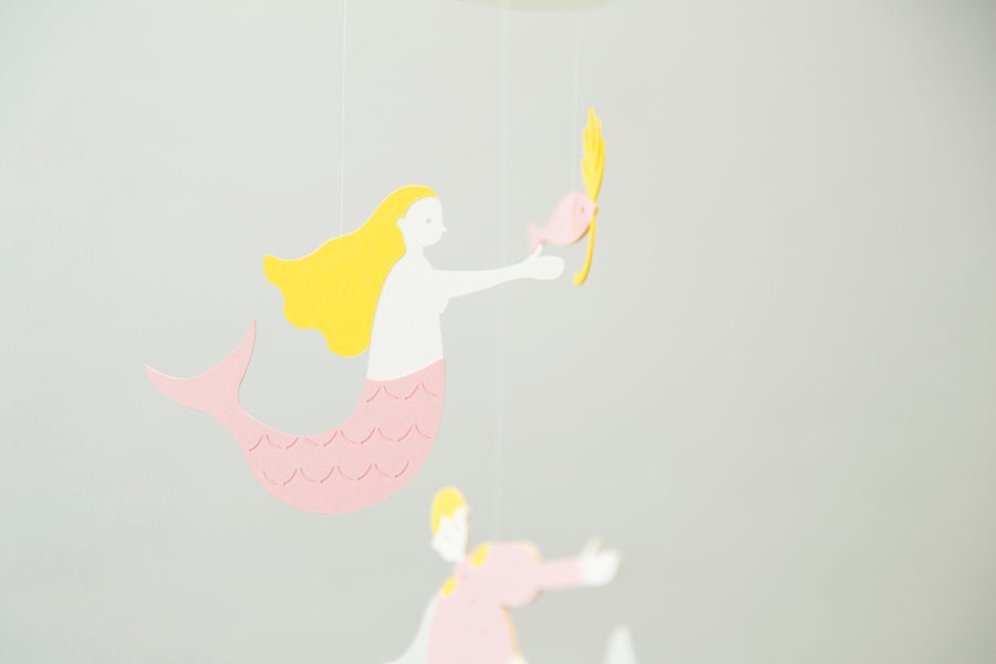 1930年代に“動く彫刻”として誕生し、北欧の家庭で広まったモビール。何枚もの紙を手作業で貼り合わせて作るモチーフは、 印刷では表現できない、温もりのある風合いです。