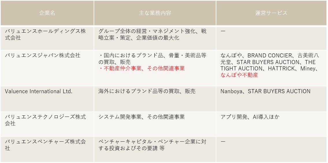 一方バリュエンスリアルエステートは、不動産仲介「なんぼや不動産」を運営しており、不動産に関するお悩みのあるお客様に寄り添い、ワンストップでサポート、バリュエンスグループの強みを生かし、様々な実物資産のご相談も受け付けております。