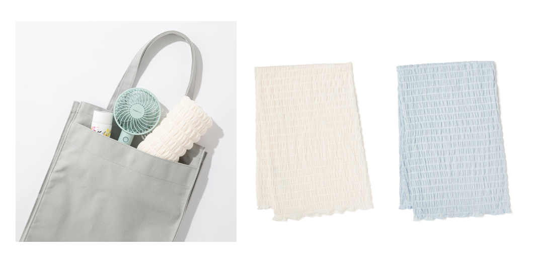 夏のお出掛けにも活躍する「ひんやり リップルブランケット」