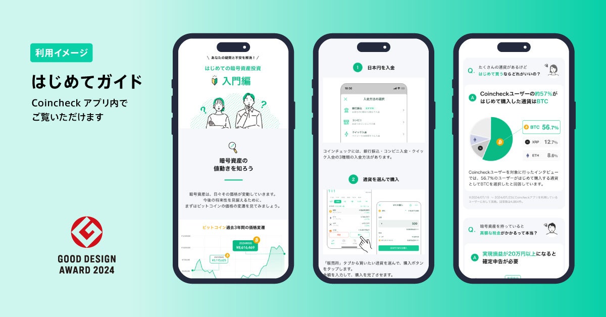 アプリダウンロード数5年連続「国内No.1*」の暗号資産取引サービス「Coincheck」を運営するコインチェック株式会社(本社:東京都渋谷区、代表取締役:蓮尾 聡、以下、当社)は、当社が提供する暗号資産取引アプリ「Coincheck」が、このたび2024年度グッドデザイン賞(主催:公益財団法人日本デザイン振興会)を受賞したことをお知らせいたします。