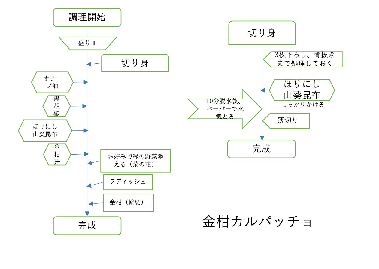 さまざまな柑橘が使えますが、特に、宮崎産の金柑との相性がいい料理です。手に入る環境であれば使ってみてください。コラボスパイスのほりにし・山葵昆布風味も魚料理に本当にマッチしますので手に入れてみてください。