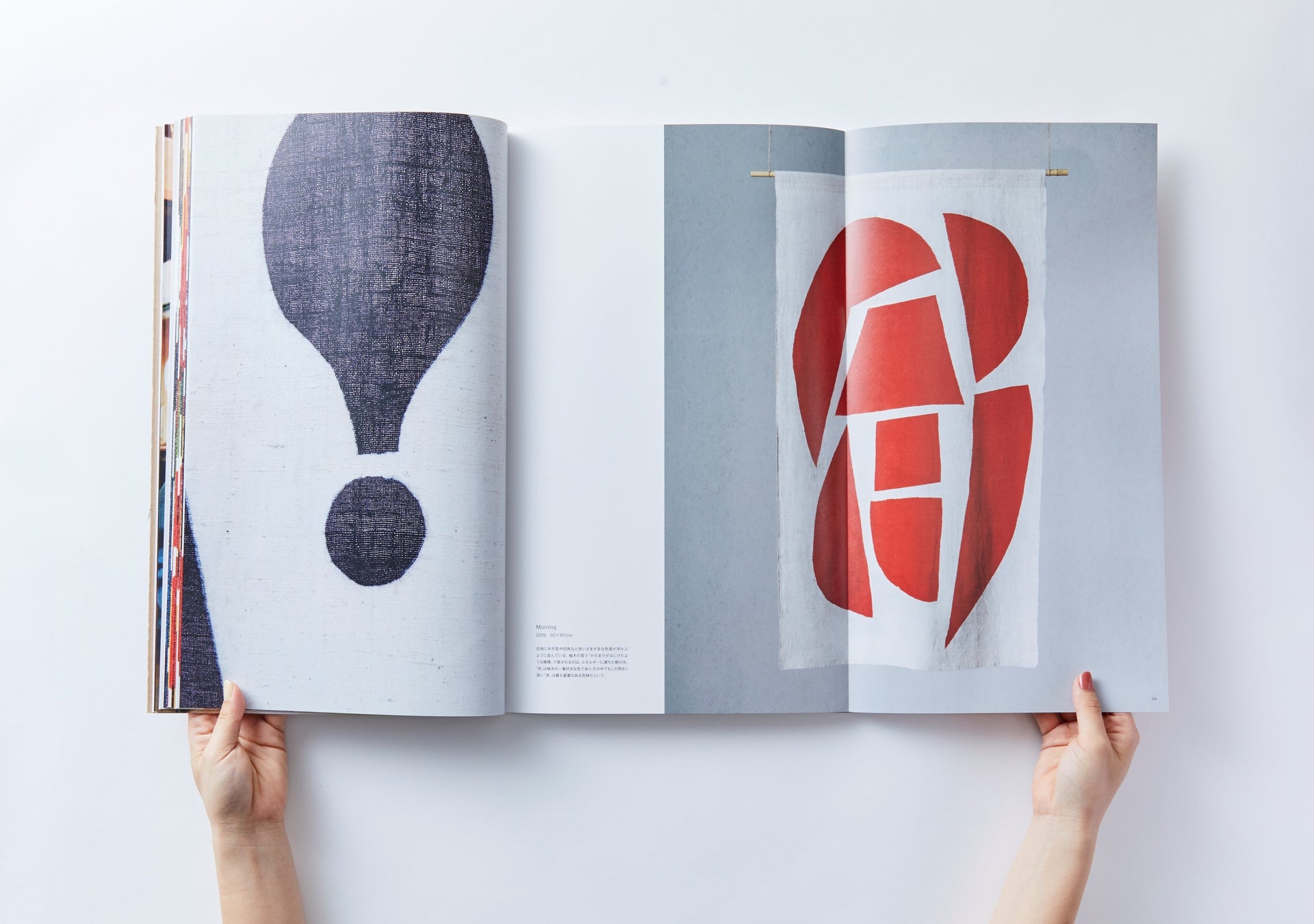 広巾布の長さが2~3メートルほどもある染色作品。それら多くの作品に迫るべく、A3変形型の判型で作られた大きな作品集です。1969年から2020年までにつくられた作品は写真家の平野太呂さんの撮り下ろし。全面断ち落とした原寸大の布の写真が12の片観音いっぱいにレイアウトされています。その他、代表的な染色作品、愉快な絵本の原画、紙粘土と布で作られた人形の図版、そして本展のキュレーションをされた林綾野さんによる柚木さんのインタビュー「心を形で残す」が収められています。