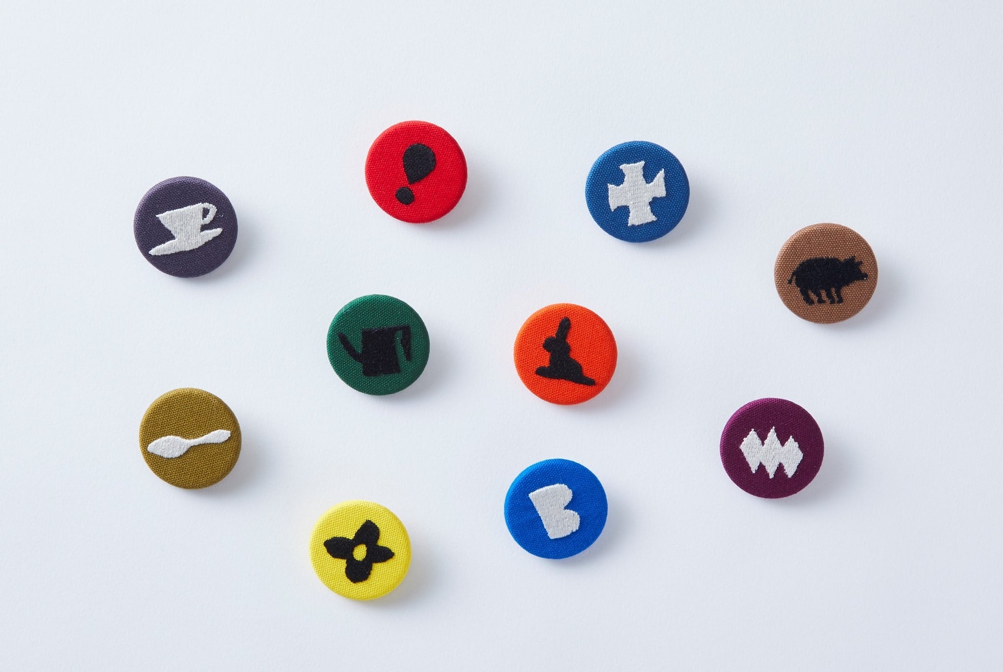 柚木さんのモチーフをくるみボタン風のブローチに。