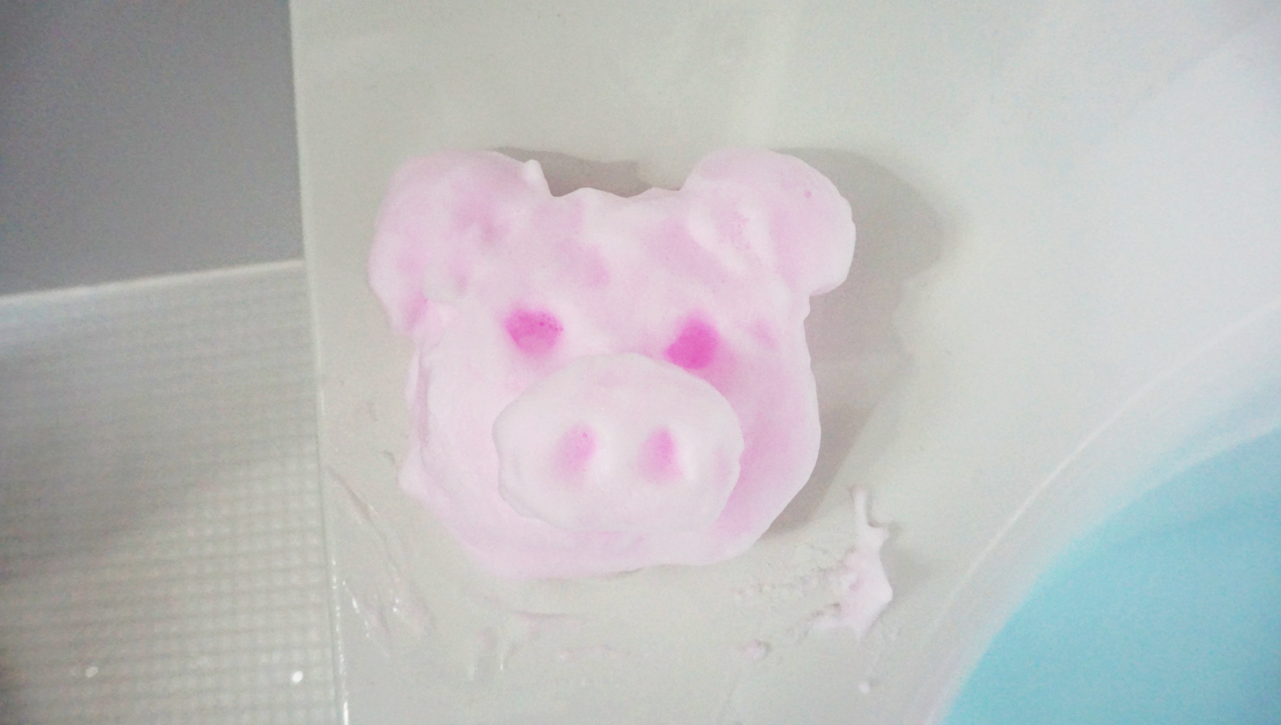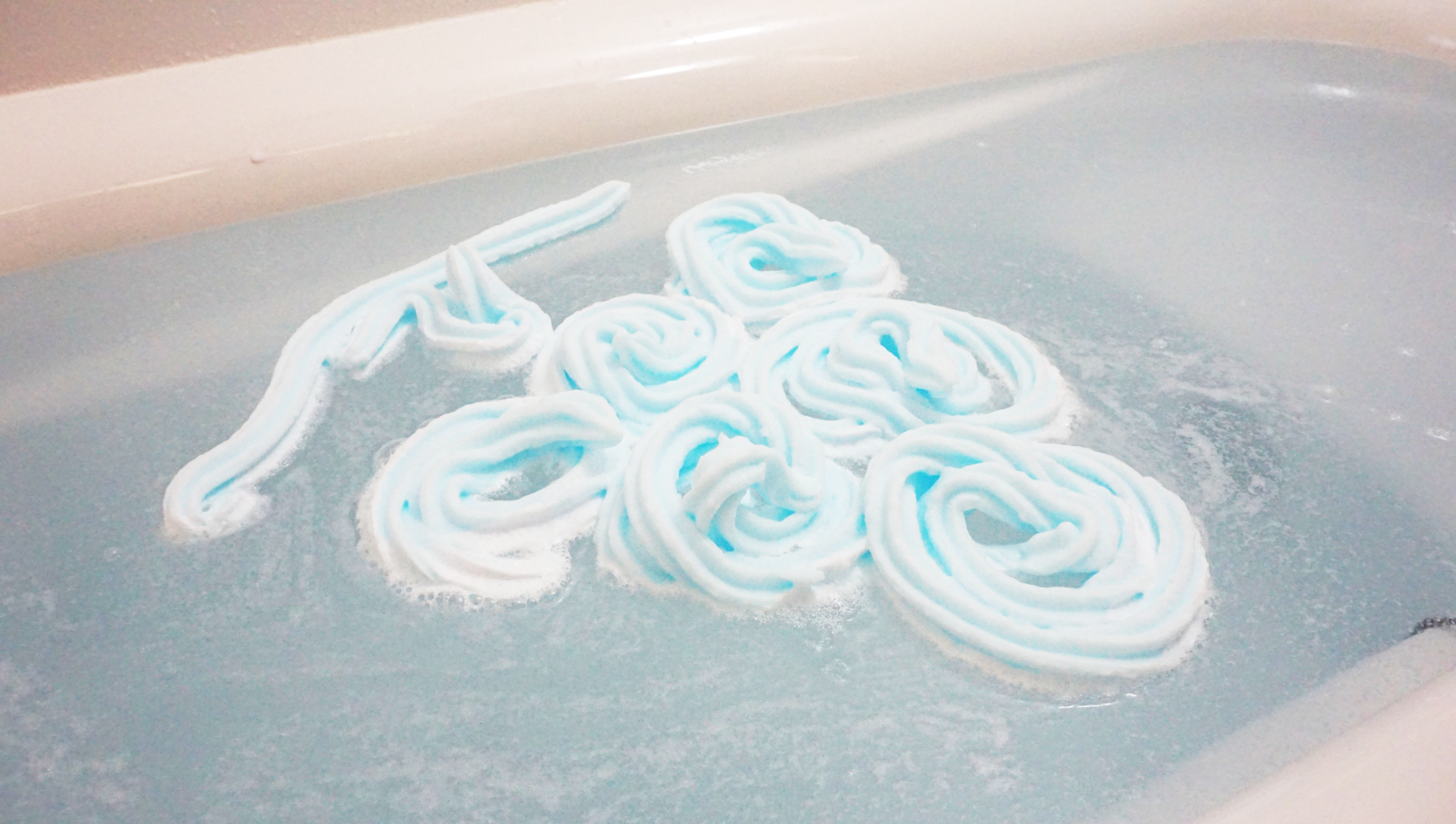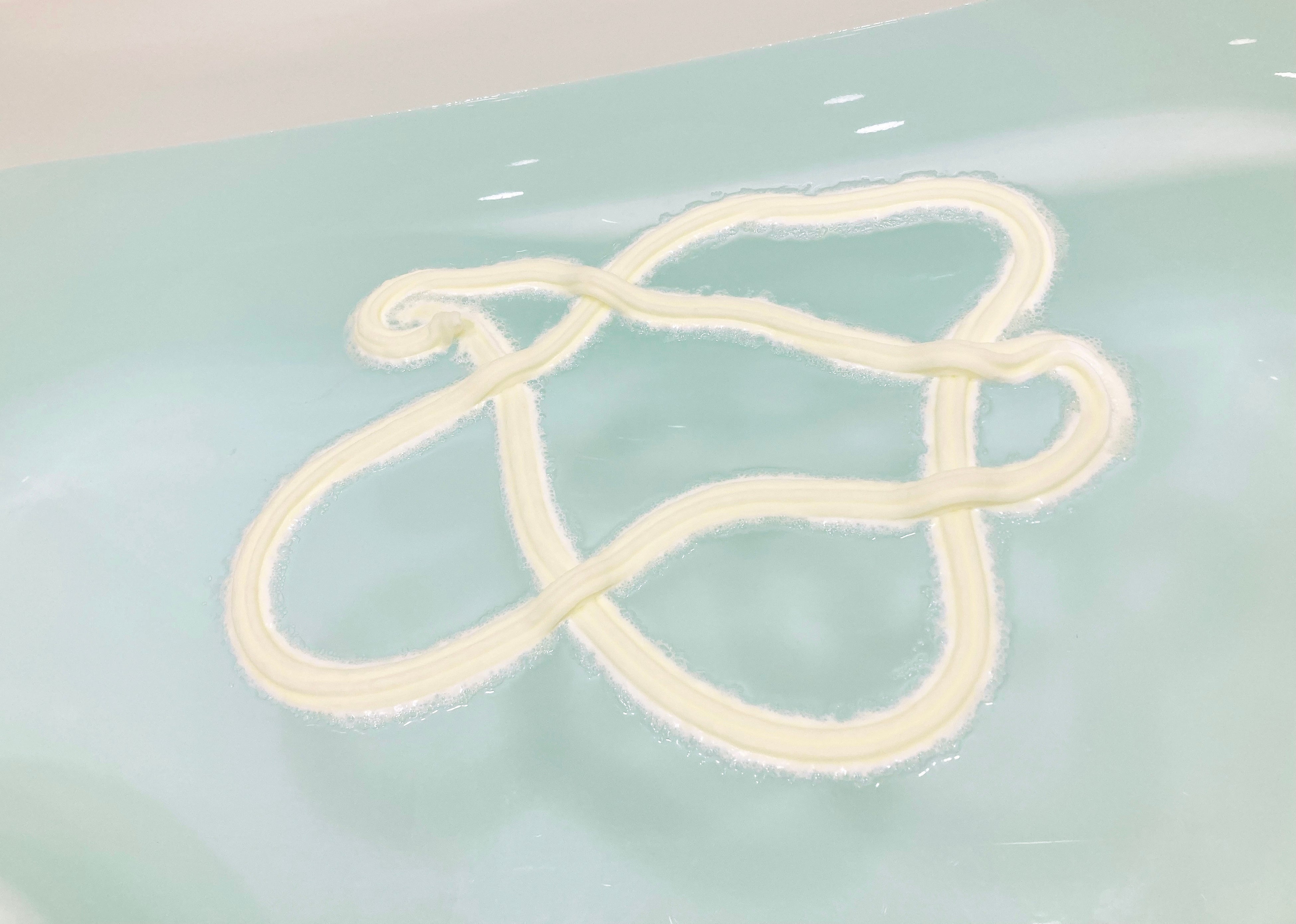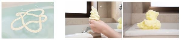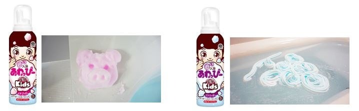 ① 湯面にお絵かきしたり、好きな形を作ったり、楽しく遊べる入浴泡!