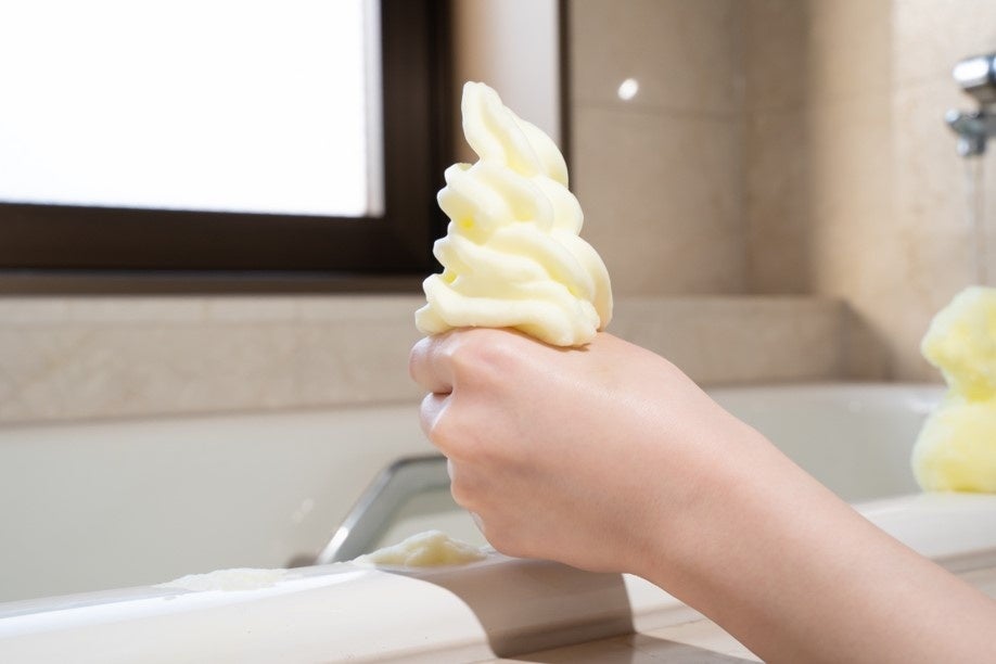 泡は湯面上で10分以上、お湯や水がないところでは3時間以上持続するため※、湯面に自由にイラストを書いたり、好きな形を作って遊ぶことができます。また、本製品1本で泡ボール(約5㎝大)約100個分が作れる内容量で、たっぷり遊べます。泡遊びを通じて、親子で一緒に楽しいお風呂タイムをお過ごしいただけます。
