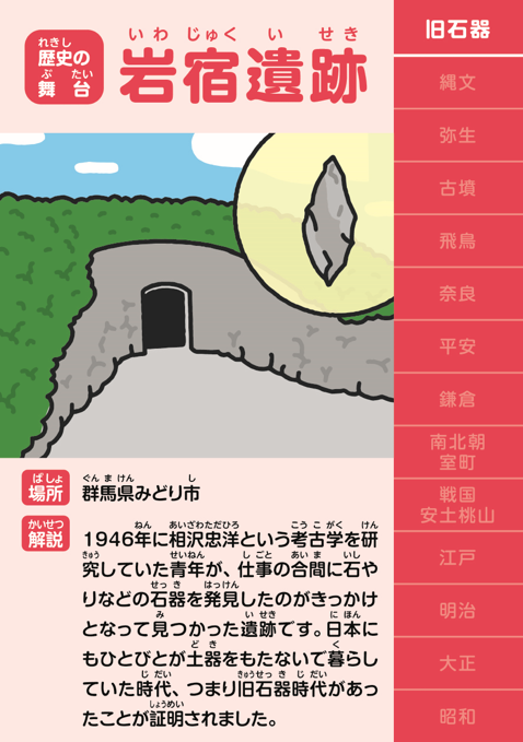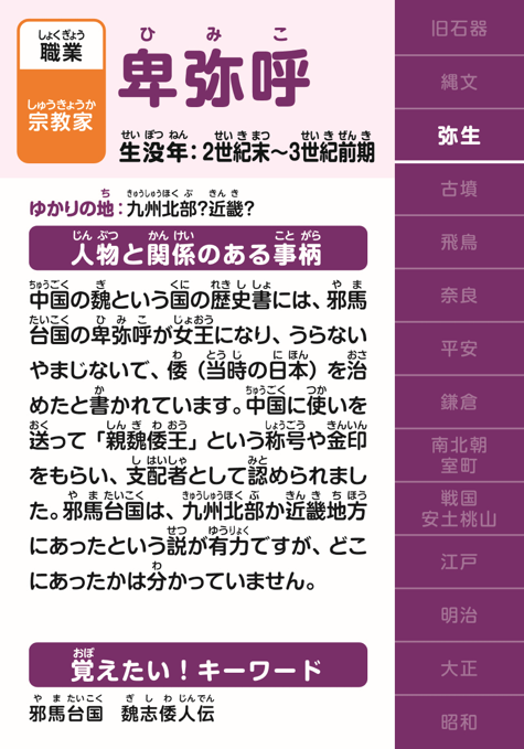 表面は歴史人物の名前と特徴を盛り込んだ五・七・五調のリズミカルな読みあげ文になっています。裏面は歴史の舞台。『るるぶ』らしく日本各地にある歴史の舞台についても学べます。