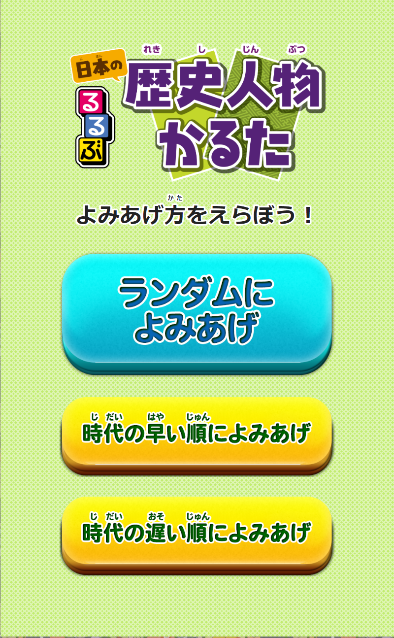 ②歴史人物並べゲーム:歴史人物が時代順に並べられます