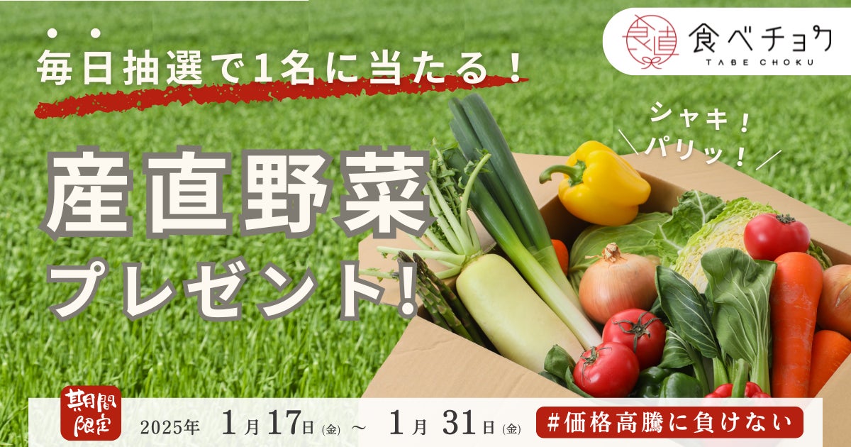毎日1名様に野菜BOXプレゼント:https://www.tabechoku.com/feature_articles/vegetablesset-present-202501