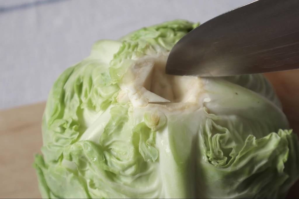 包丁の刃先等で芯をくり抜き濡らしたキッチンペーパーを詰め込み、ビニール袋に入れることで冷蔵庫で2〜3週間は保存することが可能です。