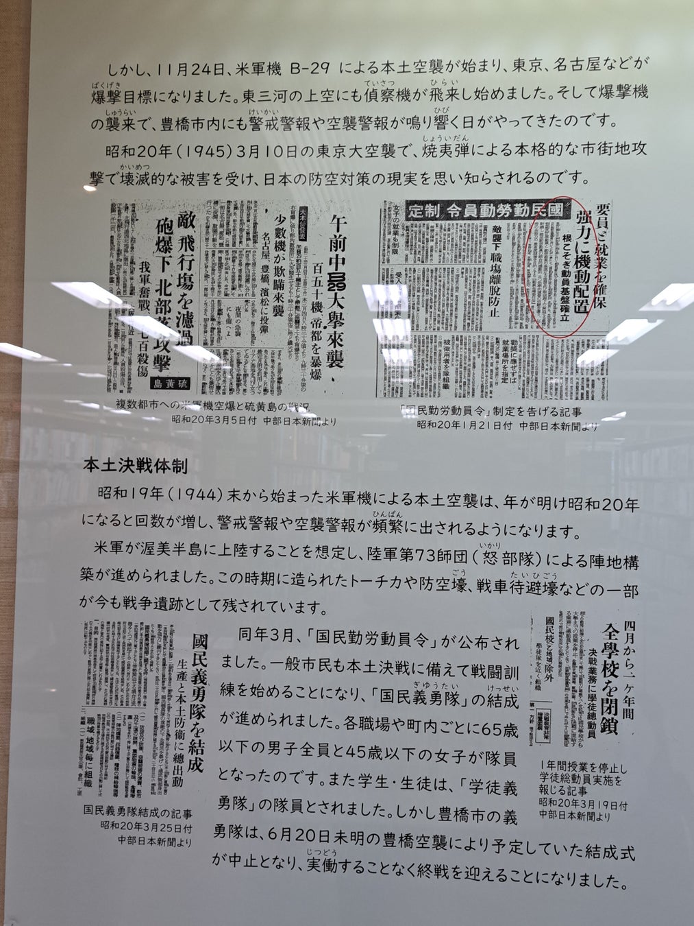 平和を求めて とよはし展「”銃後の戦い”といわれてー勤労動員と統制下のくらし」愛知県豊橋市中央図書館にて開催中