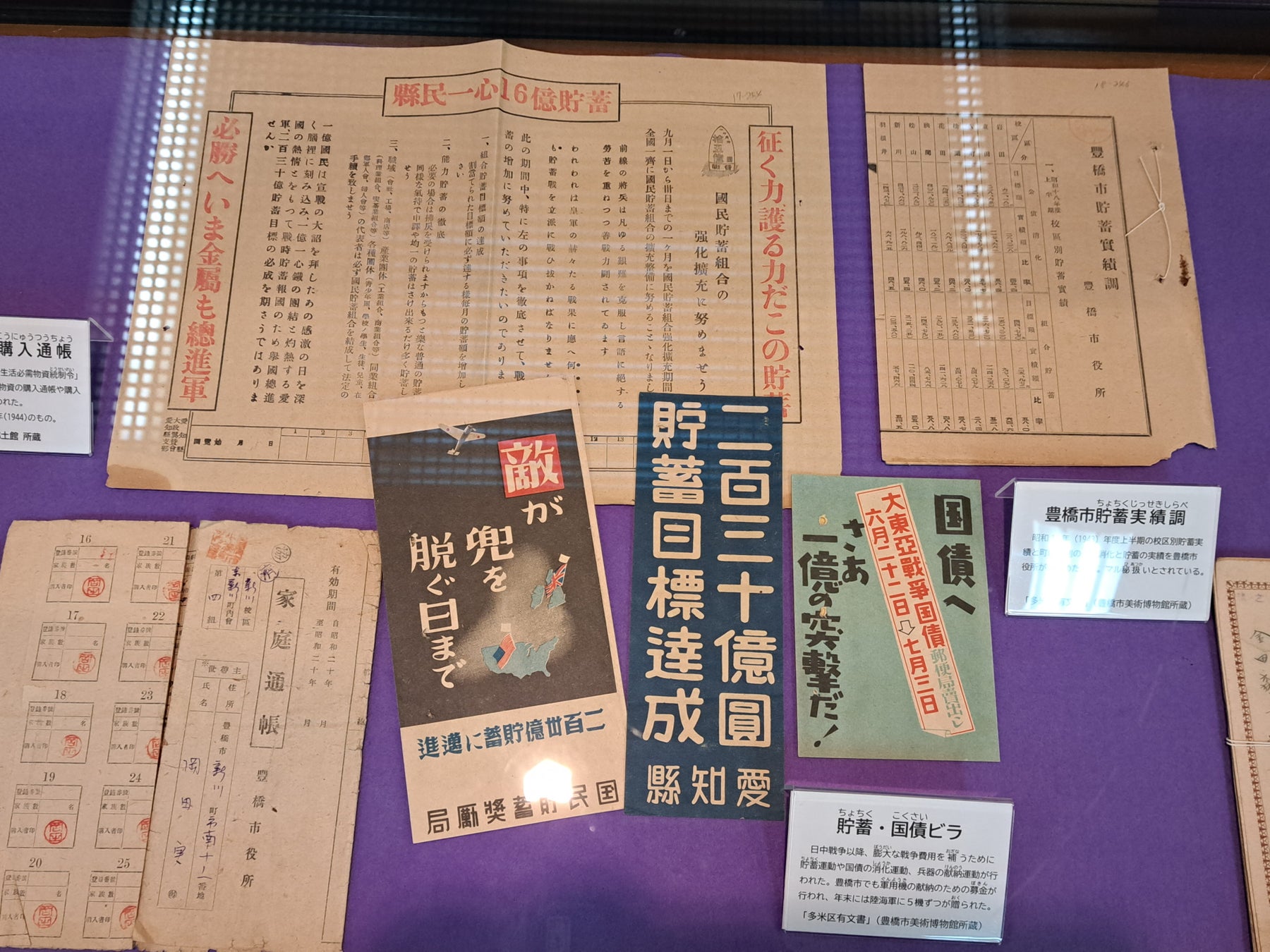 戦時中の暮らしを物語る多数の資料が展示されている資料展「第6回平和を求めて とよはし展」が開かれています。今回は、戦争で人々の暮らしが制限されていった実態や、「東洋一の兵器工場」と言われた豊川海軍工廠(こうしょう)に動員された豊橋市内に住む女性の体験をもとにした兵器製造、多くの犠牲者を出した爆撃前後の様子などを紹介。戦場ではなく、後方に焦点を当てた「”銃後の戦い”といわれてー勤労動員と統制下のくらしー」をテーマにしています。