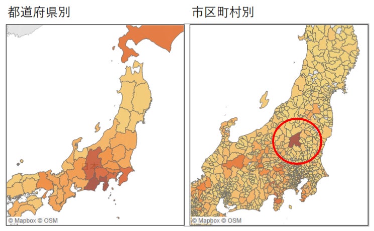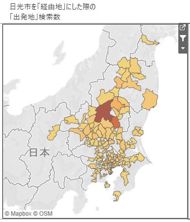 2022年1月~12月の期間で、日光を目的地として設定したバイクライダーがどこから来ているのかを確認すると、関東や東北地方からの検索が多いことが確認できます。