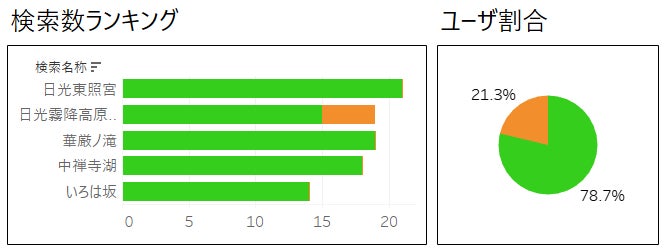 栃木県日光市の2022年9月から11月の検索されたスポットのランキングをみると、日光東照宮や華厳の滝など日光の人気の観光地のほか、日光霧降高原やいろは坂も上位にあがっており、分析2の結果と合わせることで、紅葉時期に景観の良いルートを走行したいバイクライダーの行動がうかがえます。