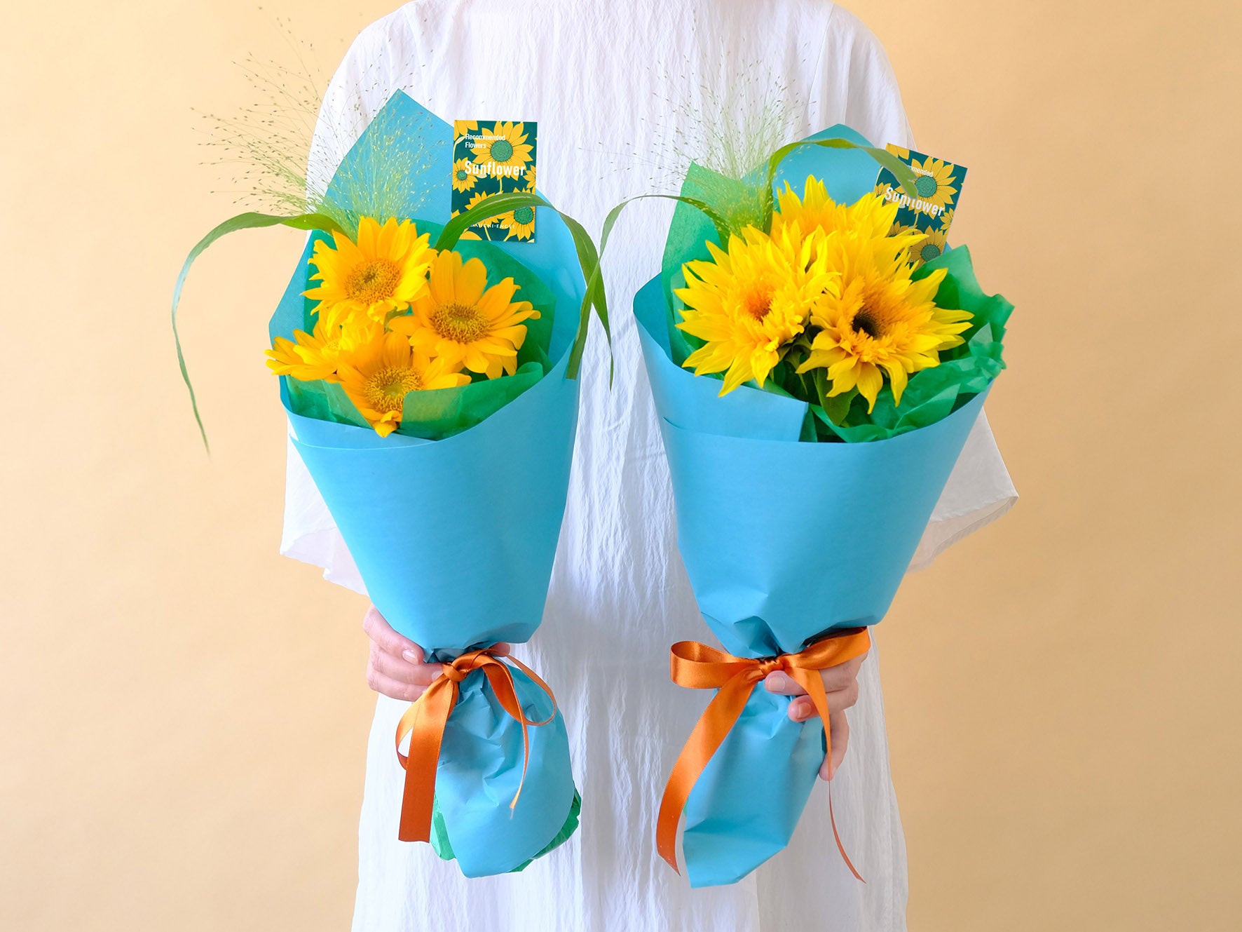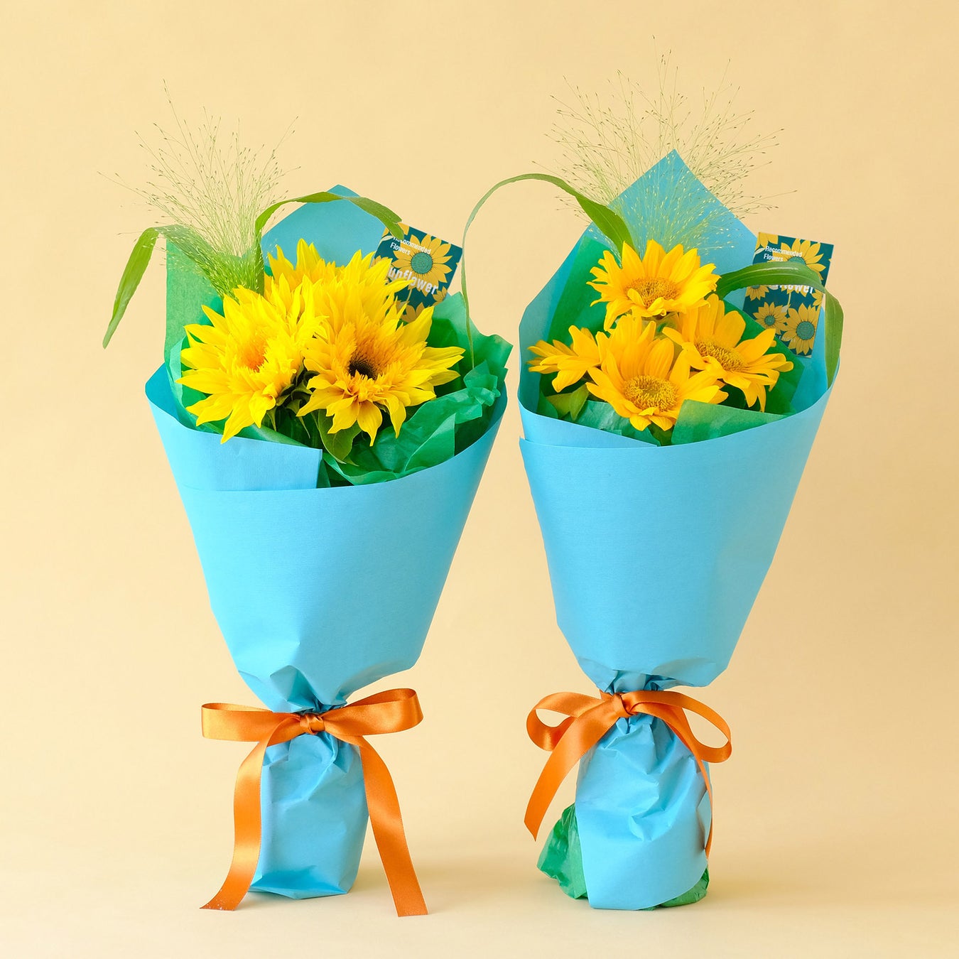 ショップおすすめのヒマワリをシンプルなブーケに仕上げました。コンパクトなサイズでちょっとしたギフトやご自宅用にもおすすめです。