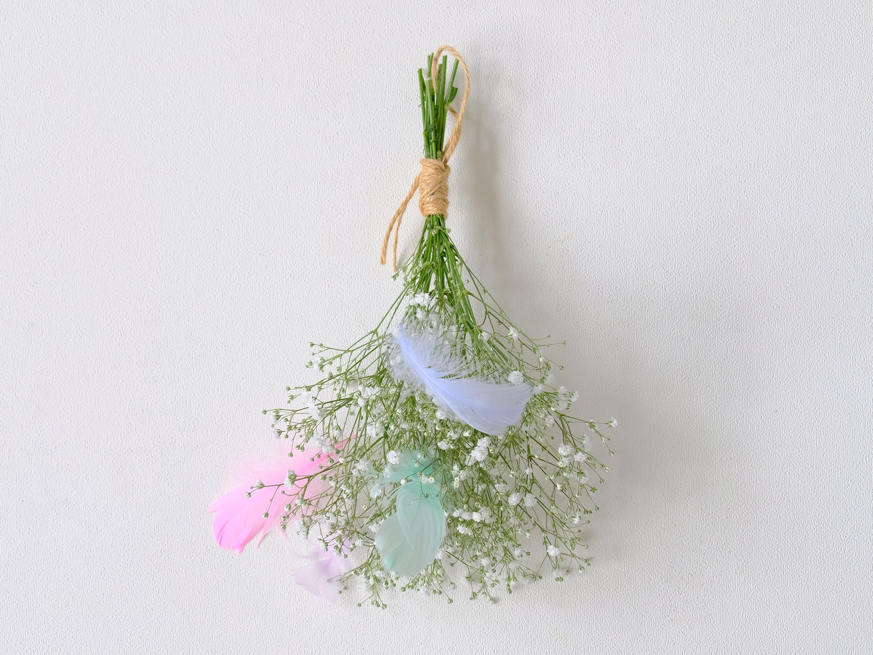 カスミソウはドライフラワーにもぴったりです。風通しの良い場所に下げておくだけで簡単にドライフラワーが出来上がりますので、お子様の夏休みの工作にもおすすめです。