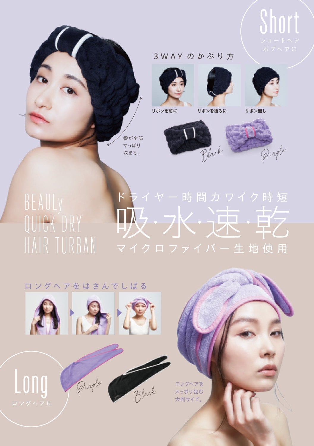 BEAULy クイックドライヘアターバンshort Black/Purple