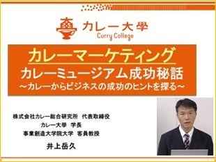 テレビや新聞でお馴染みのカレー専門のコンサルティング会社である株式会社カレー総合研究所(所長:井上岳久/東京都渋谷区)は、自社の運営する「カレー大學」において「オープンキャンパス」として開校します。第二弾は『カレーマーケティング「カレーミュージアム成功秘話」~カレーからビジネス成功のヒントを探る』をオンラインで3月1日に開校します。