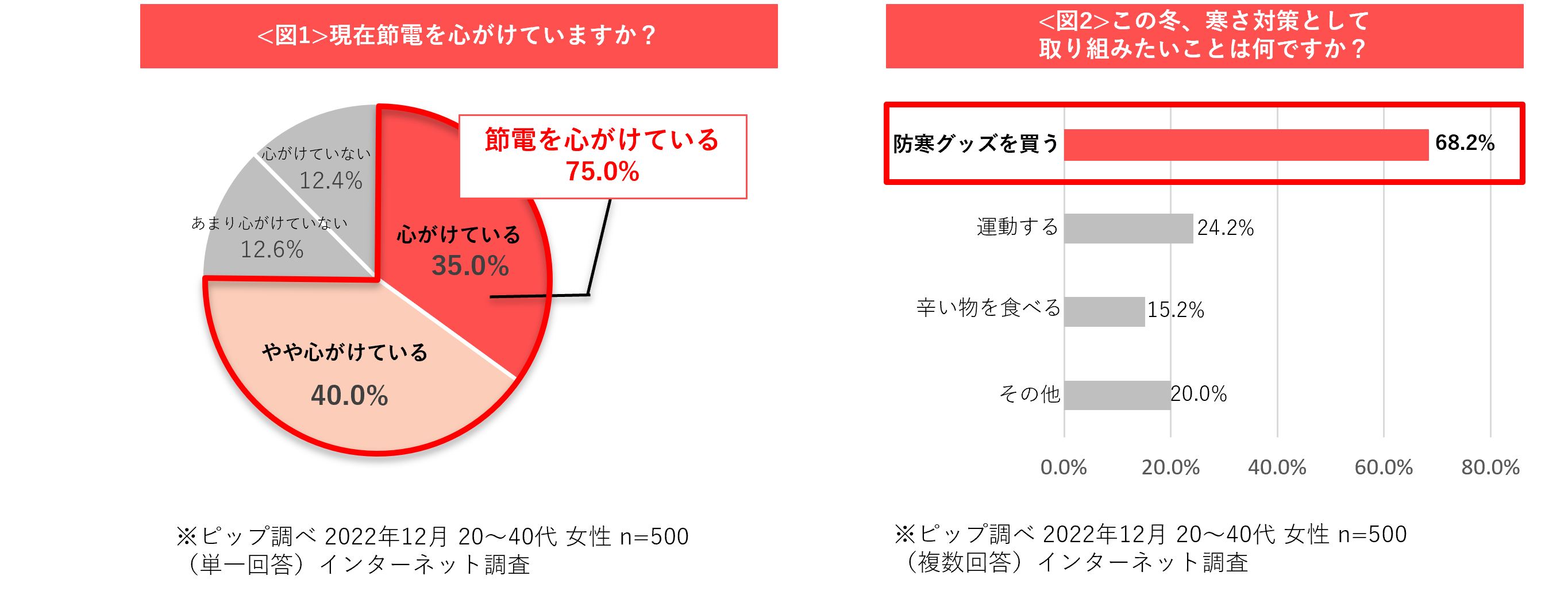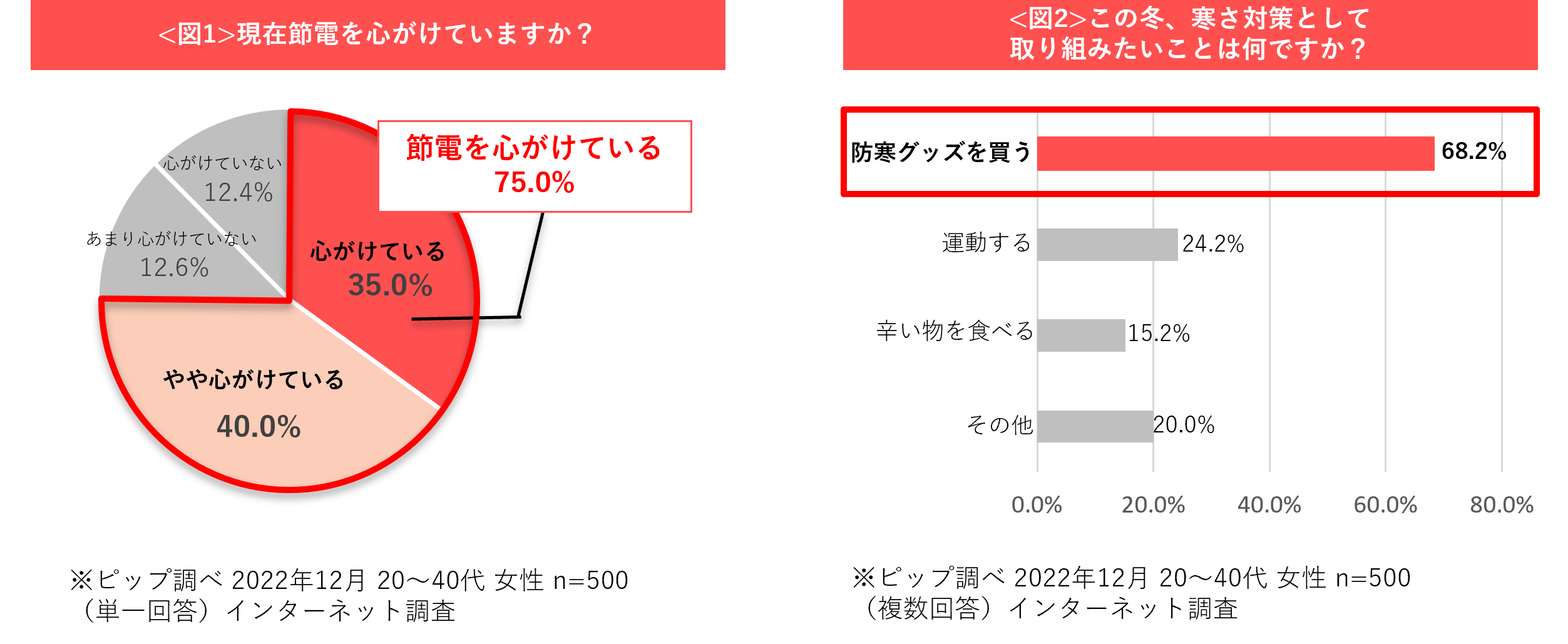 このように今冬は、調査結果から「防寒グッズを買う」という手軽に温活したい方が多い傾向です。ただし防寒グッズの中には電気を使用するグッズも多いため、今冬は電気の使用を抑えて防寒できるグッズを上手く取り入れることが重要です。