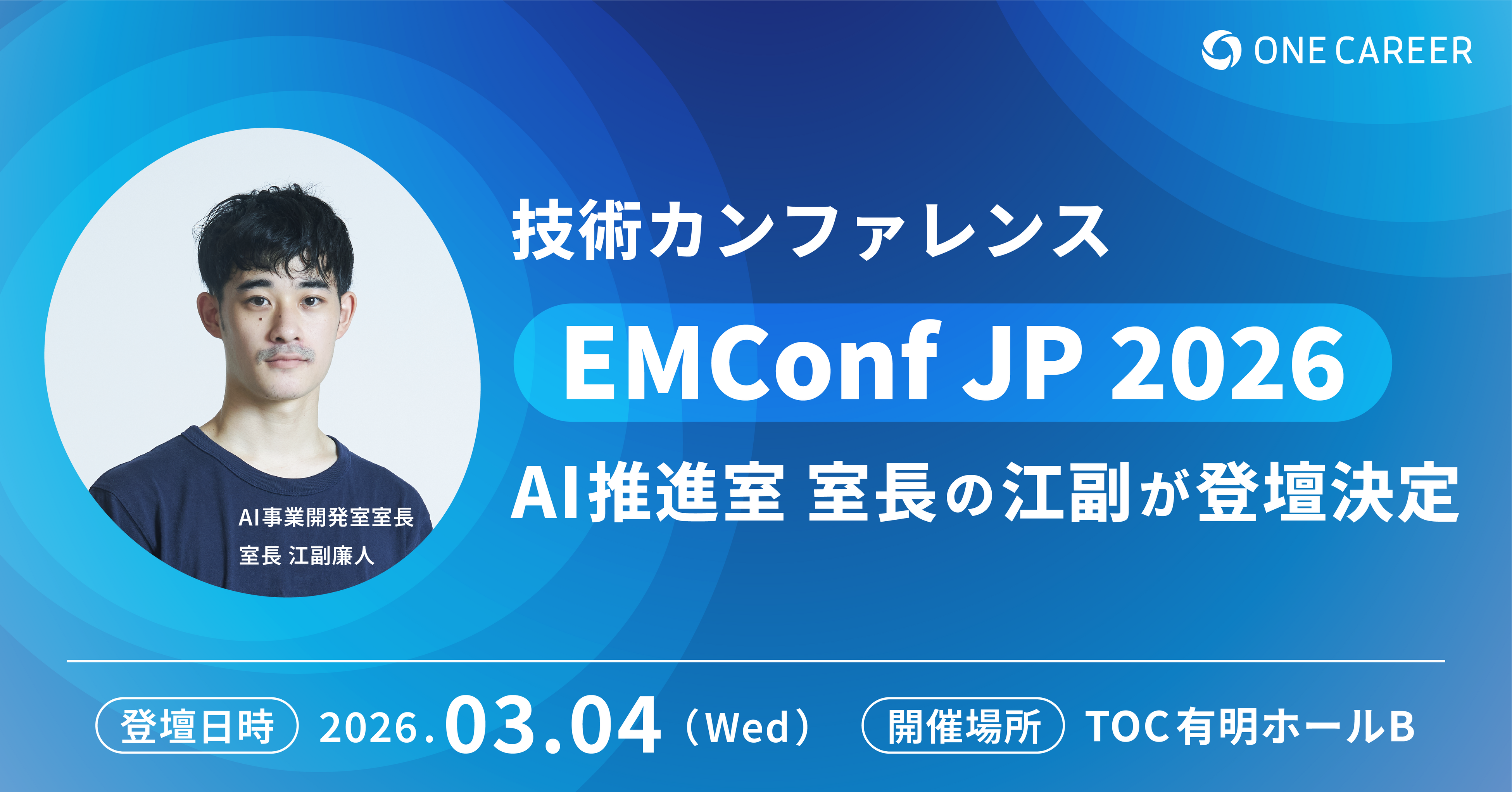 キャリアデータプラットフォーム事業を運営する株式会社ワンキャリア(本社:東京都渋谷区、代表取締役社長 執行役員CEO:宮下 尚之)は、2026年3月4日(水)に開催されるEM(Engineering Manager)を対象とした技術カンファレンス「EMConf JP 2026」に、当社AI事業開発室 室長の江副 廉人がセッション登壇することをお知らせいたします。
