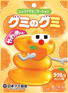 商品特徴: 「日本グミ協会」とコラボしたグミの第二弾が登場。ジュレ入りのオレンジ味でやわめ食感が楽しめます。パッケージデザインは3種類。