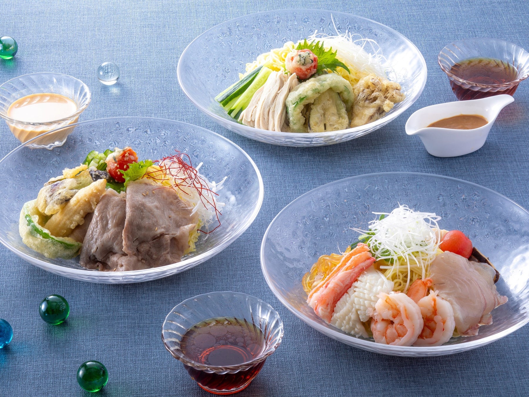 中国レストラン 聚景園では、海の幸たっぷりの海鮮冷麺や和牛スタミナ冷麺、さっぱりとした棒棒鶏冷麺に加えて、ロブスターや鮑、キャビアなど選び抜かれた食材で仕立てた「特選プレミアム冷麺コース」など、涼味あふれる冷麺をご用意。冷麺をご注文のお客さまは、小籠包、餃子、焼売とサラダがついた点心セットもお得に愉しんでいただけます。