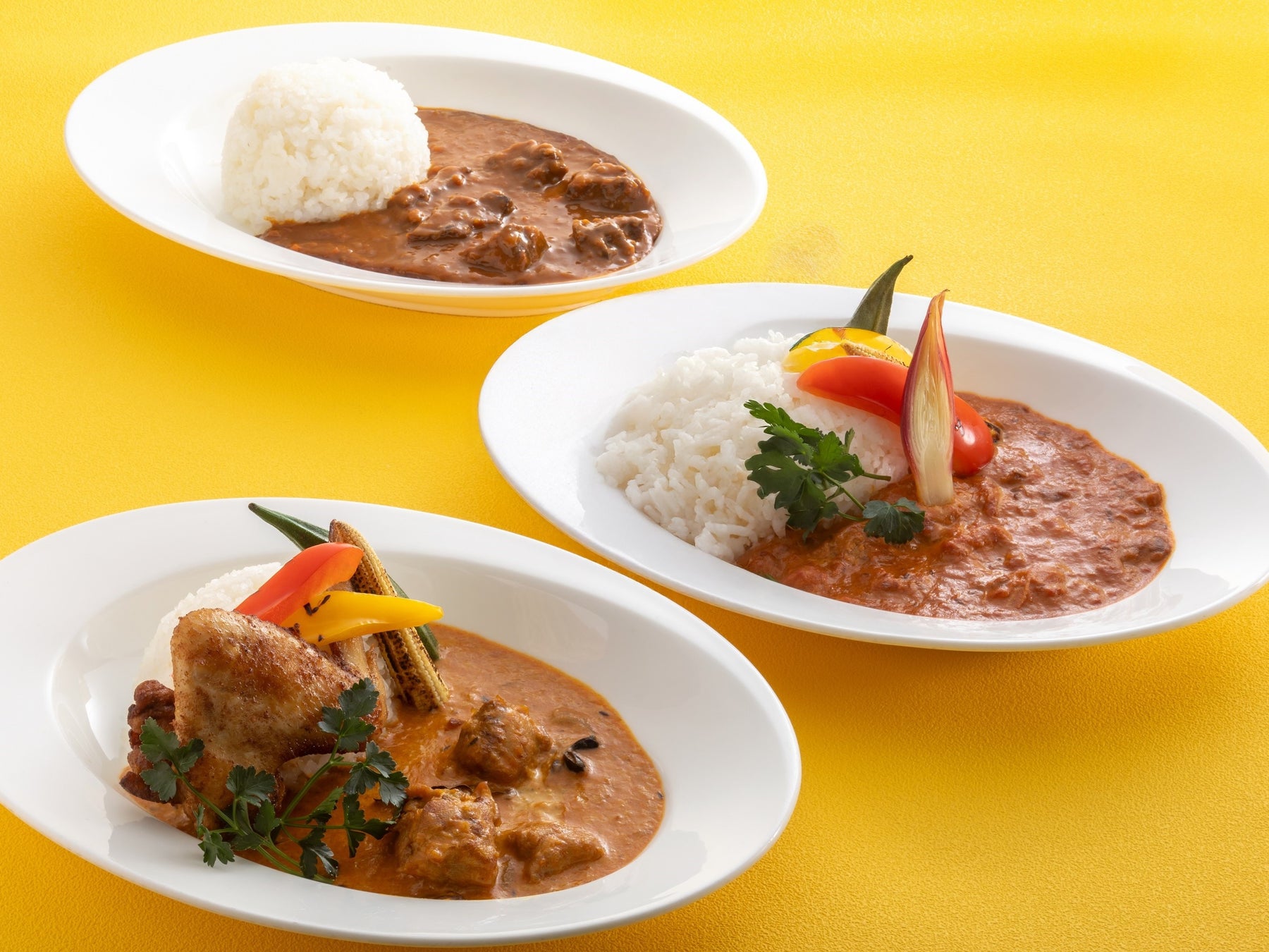 ダイニングカフェ SOCOでは、夏の元気を応援する4種類のカレーをご用意。神戸ビーフプレミアムカレー、SOCO特製トマトチキンカレー、ポートピアホテル名物料理 黒毛和牛ビーフカレーなど、午後に向けてのパワーチャージに最適なランチメニューをご用意します。
