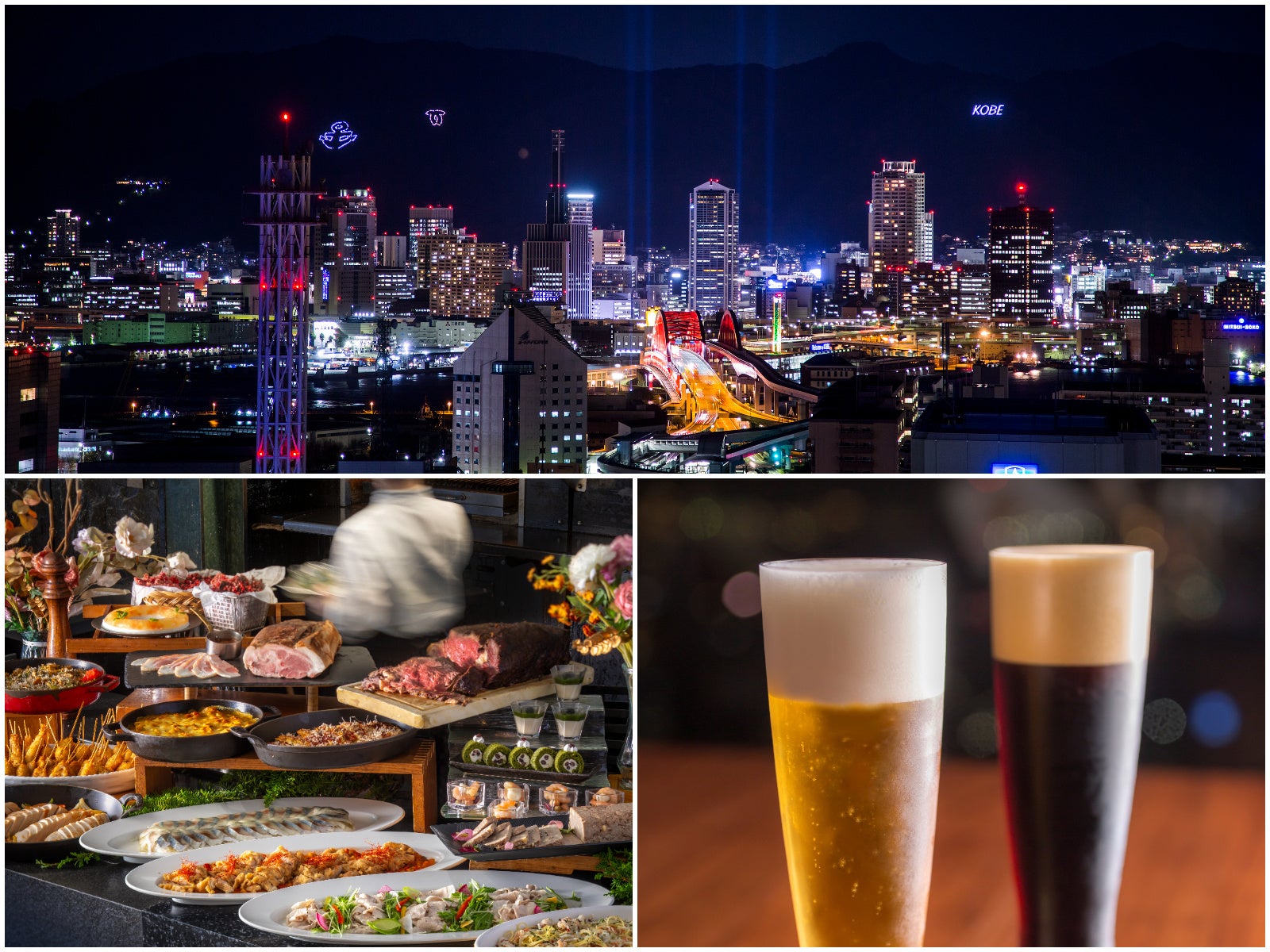 スカイグリルブッフェ GOCOCUでは、ディナーブッフェとフリーフロー(飲み放題)がセットになった「スカイブッフェ&ビア」を開催します。個性豊かなクラフト生ビールに、関西が誇る銘酒、目にも涼やかなオリジナルカクテルやノンアルコールドリンクも充実。神戸1000万ドルの夜景とともに涼しい店内でビアガーデン気分をお楽しみください。