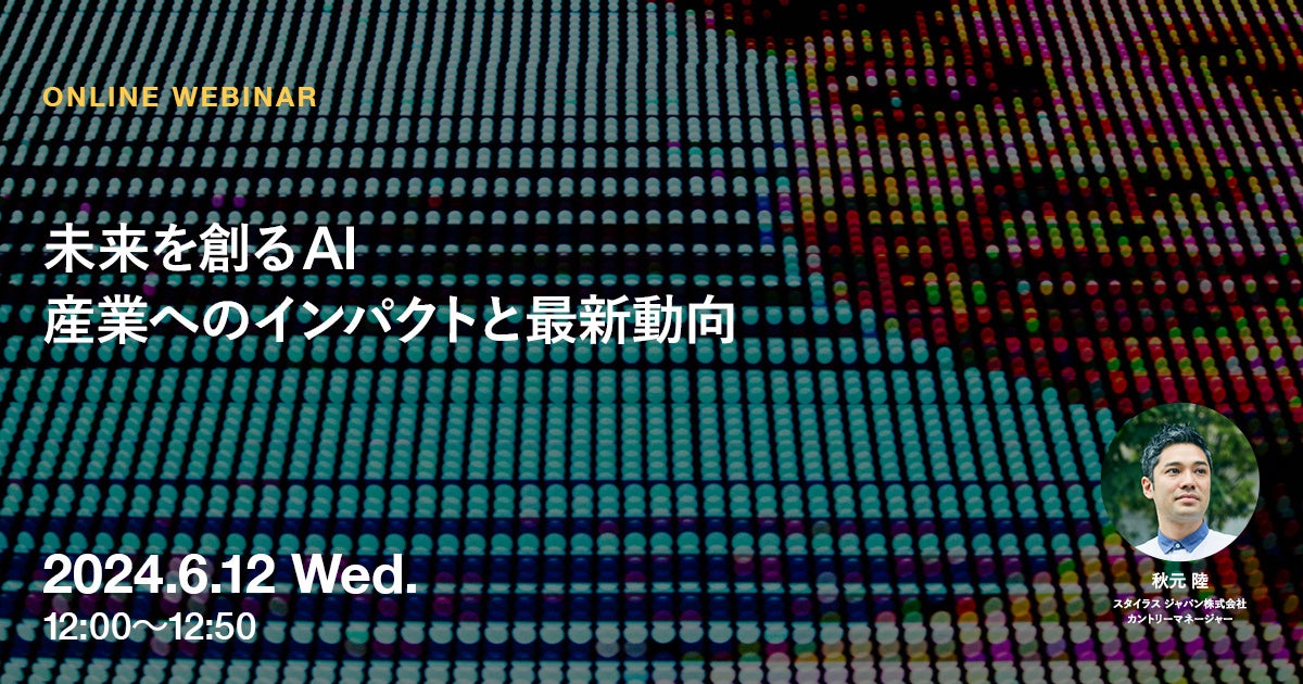 本セミナーでは、世界的なマーケットトレンドを研究するイノベーションアドバイザリー「STYLUS」の秋元陸氏を迎え、AIの最新トレンドとその産業への適応方法について深掘りします。