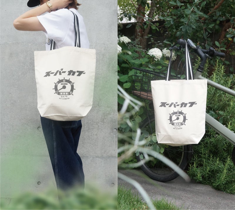 ノリモノの雑貨を企画販売する株式会社フェイスから、スーパーカブのイラストが入ったビッグサイズトートバッグが発売となりました。