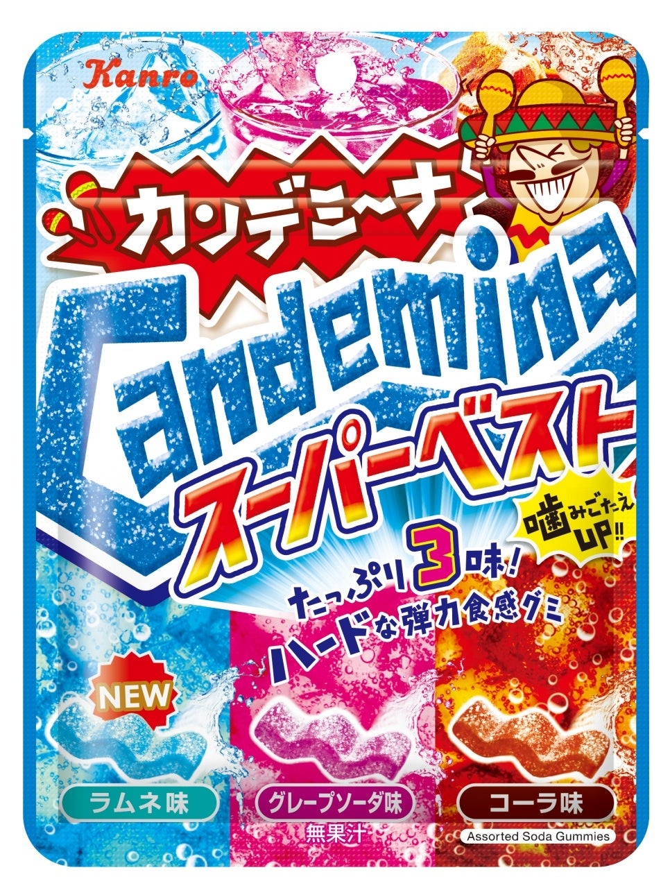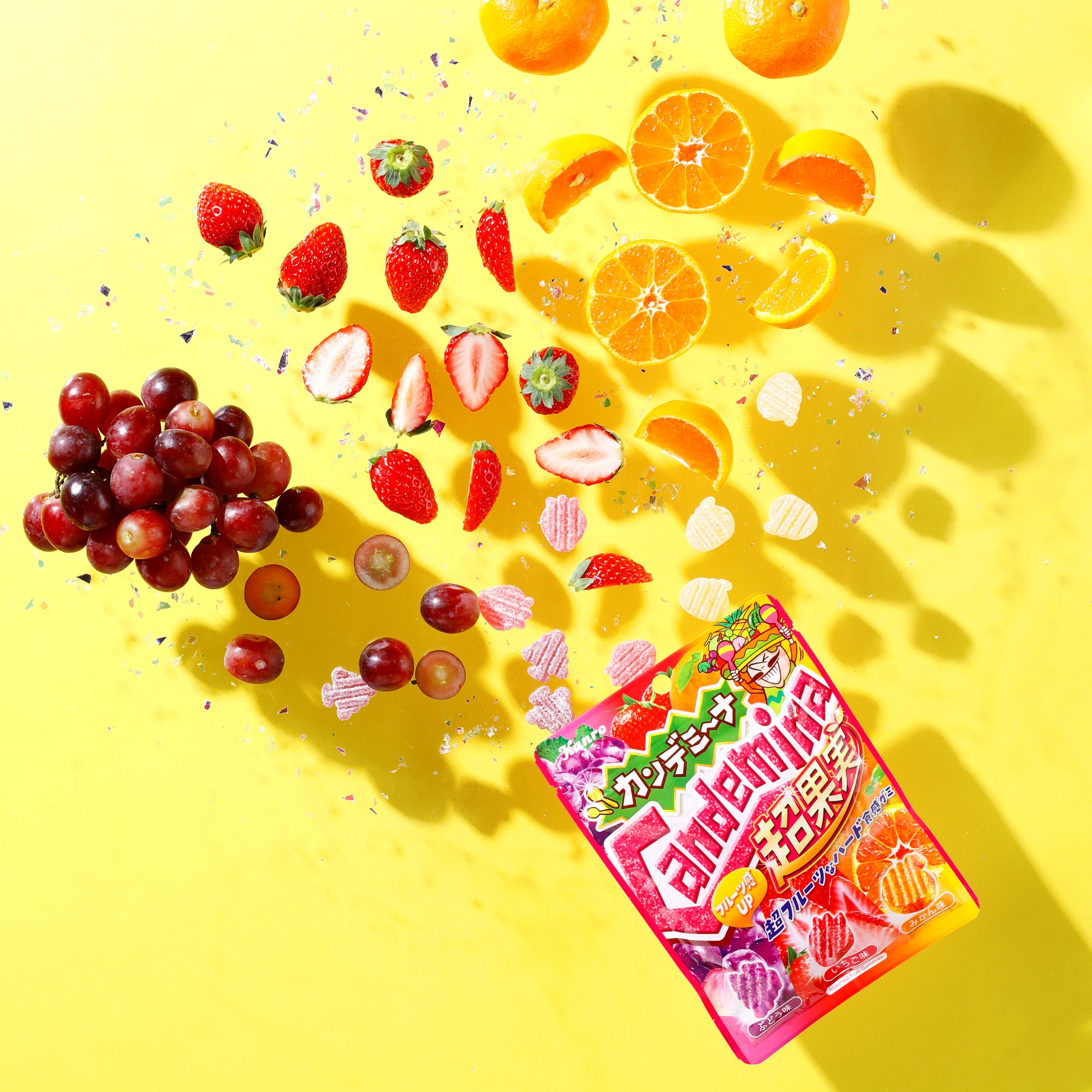 果汁をたっぷりと配合した、ハード&ジューシーで超フルーツなカンデミーナグミをぜひお召し上がりください。