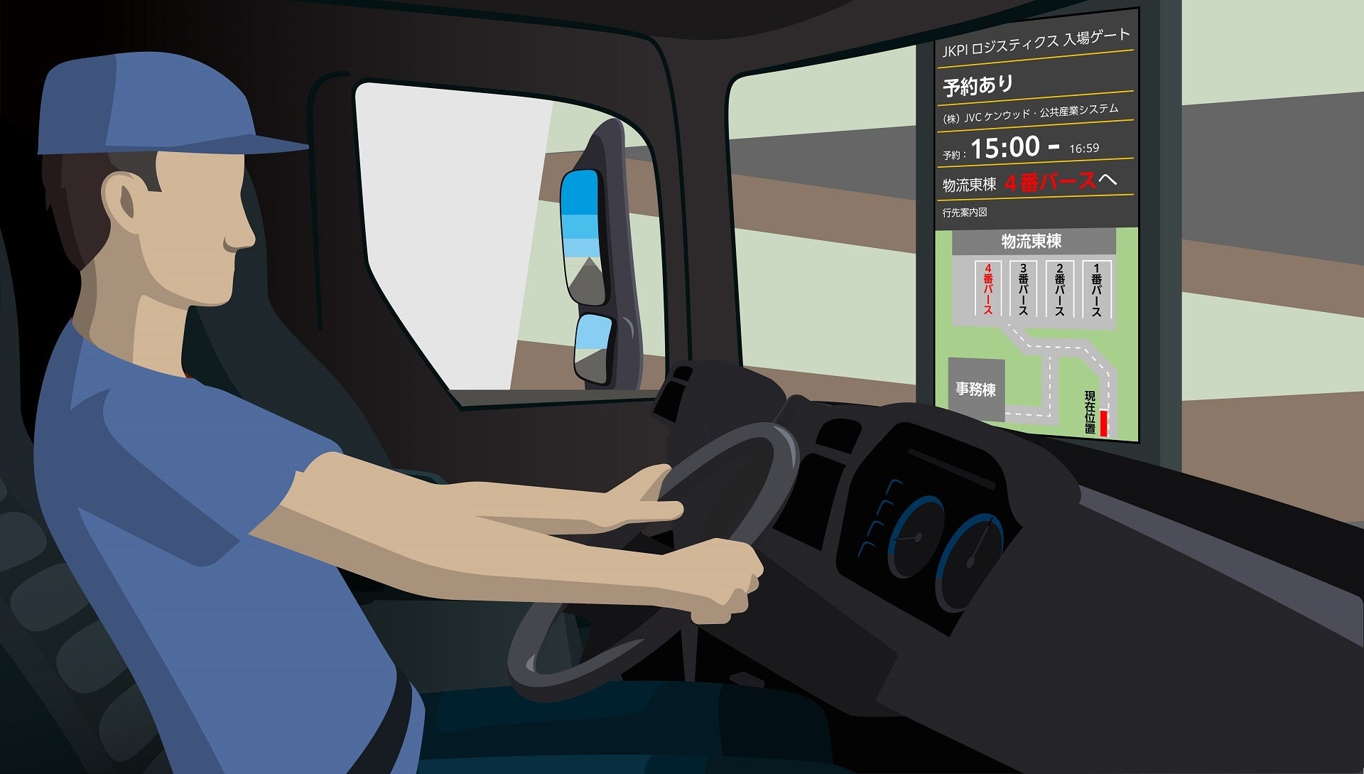 バース予約システムとデータ連携し、物流施設における車両の入退場や作業スペースへの誘導をサポート