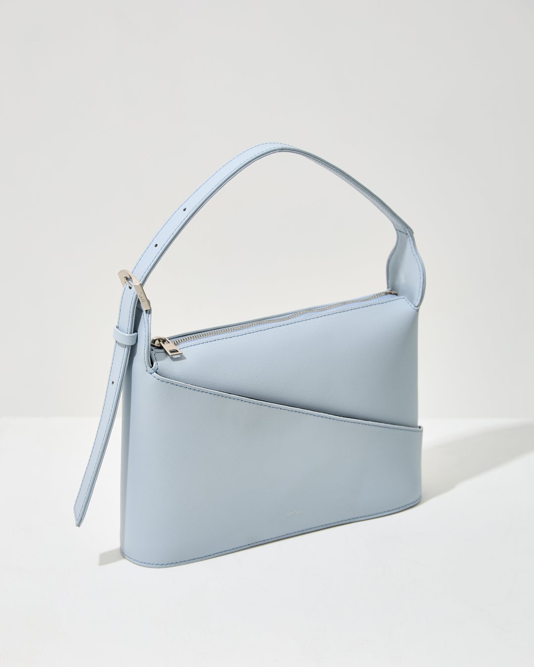 バーニーズ ニューヨークでは、外側のポケットの形が目を引く使いやすいサイズのバッグを今年注目の淡いブルーのカラーで別注。春のコーディネートにポイントとなるアイテムです。