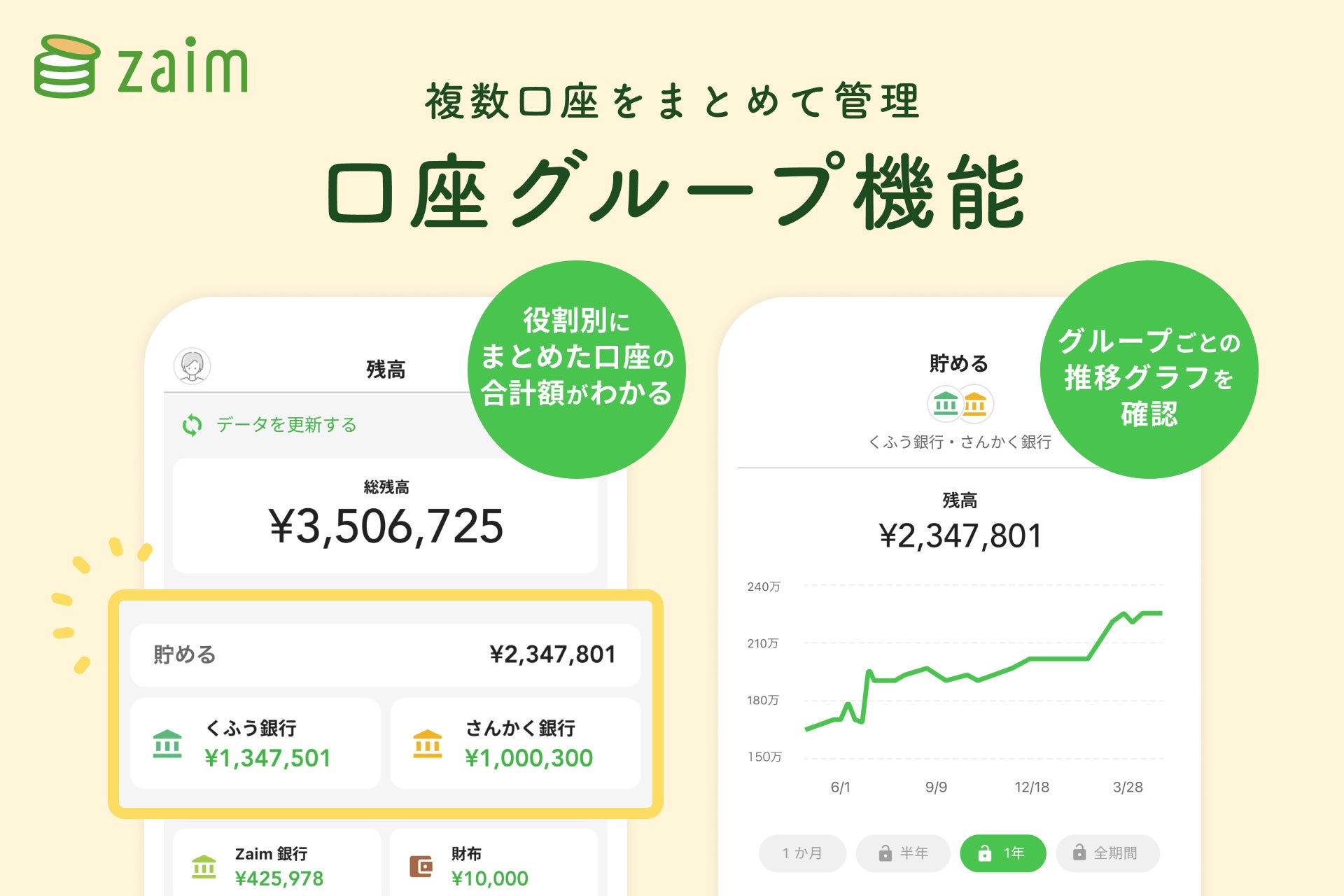 家計簿アプリZaim、「使う」「貯める」「増やす」など、役割別に口座を管理する「口座グループ機能」をリリース