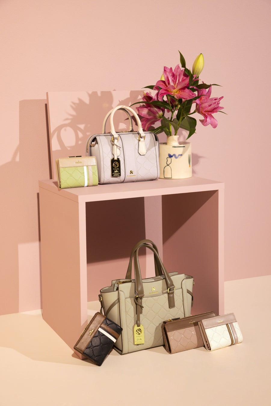 日常のライフスタイルに寄り添う、カジュアルだけど上品でおしゃれ見えする、アンドシュエットならではの型押しモノグラムシリーズやベルトデザインがキャッチーなシリーズがラインナップ。