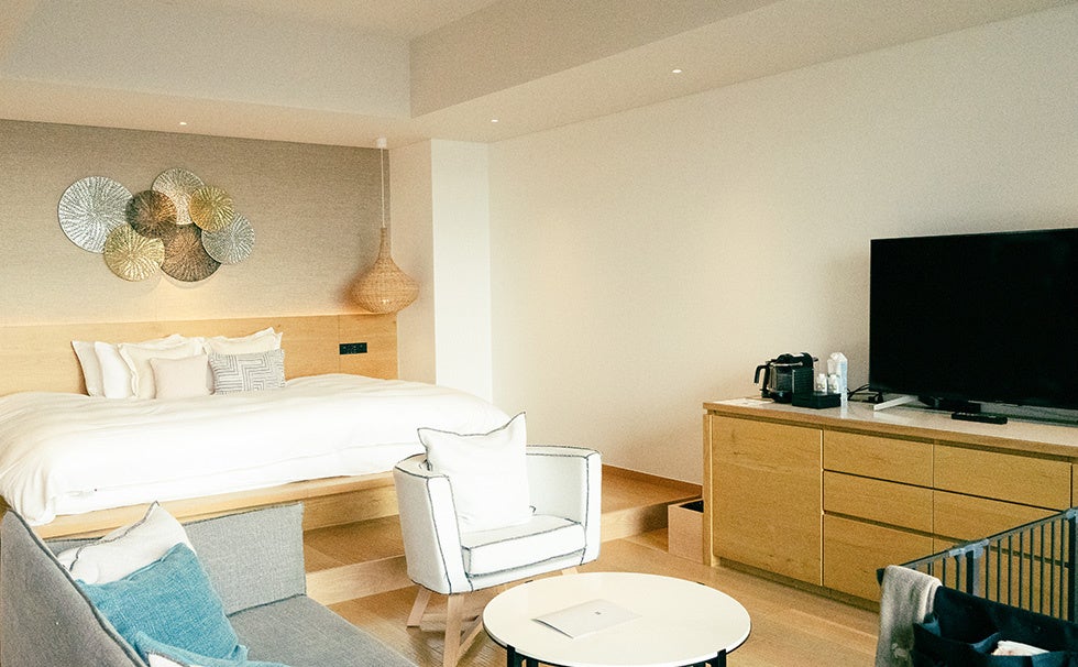 全11室が50㎡以上のオールスイートの客室は、全室から海を望む富士山ビューのスモールラグジュアリーホテルです。客室ごとに異なる眺望とスタイルの違う上質な空間では「何もしない贅沢な時間」をお過ごしいただけます。愛犬と宿泊可能なドッグフレンドリールームのガーデンテラスや、バルコニーでも利用可能なルームサービスではレストランのお料理をお召し上がりいただけ、自由度の高いリゾートステイを叶えます。また、災害時の大規模停電が問題となる昨今、日本のホテルでは初となる、停電時に電気自動車からホテルフロントの照明やコンセントに電力を供給し、携帯電話の充電や暖をとることもできる電力給電システム「V2B:Vehicle to building」と「ワークプレイス・チャージング」を導入し、環境と非常時にも配慮したホテルを目指しております。