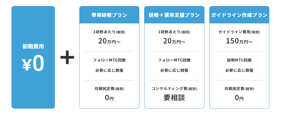 研修内容や企業規模、参加者数に応じて柔軟に料金プランを設定しております。詳細については、お気軽にお問い合わせください。