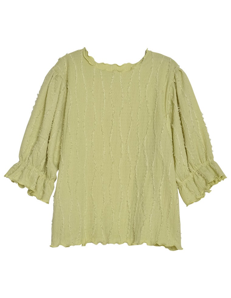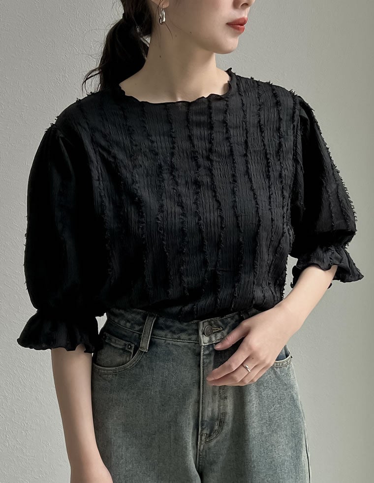 商品名:フリンジカットジャガードキャンディースリーブトップス